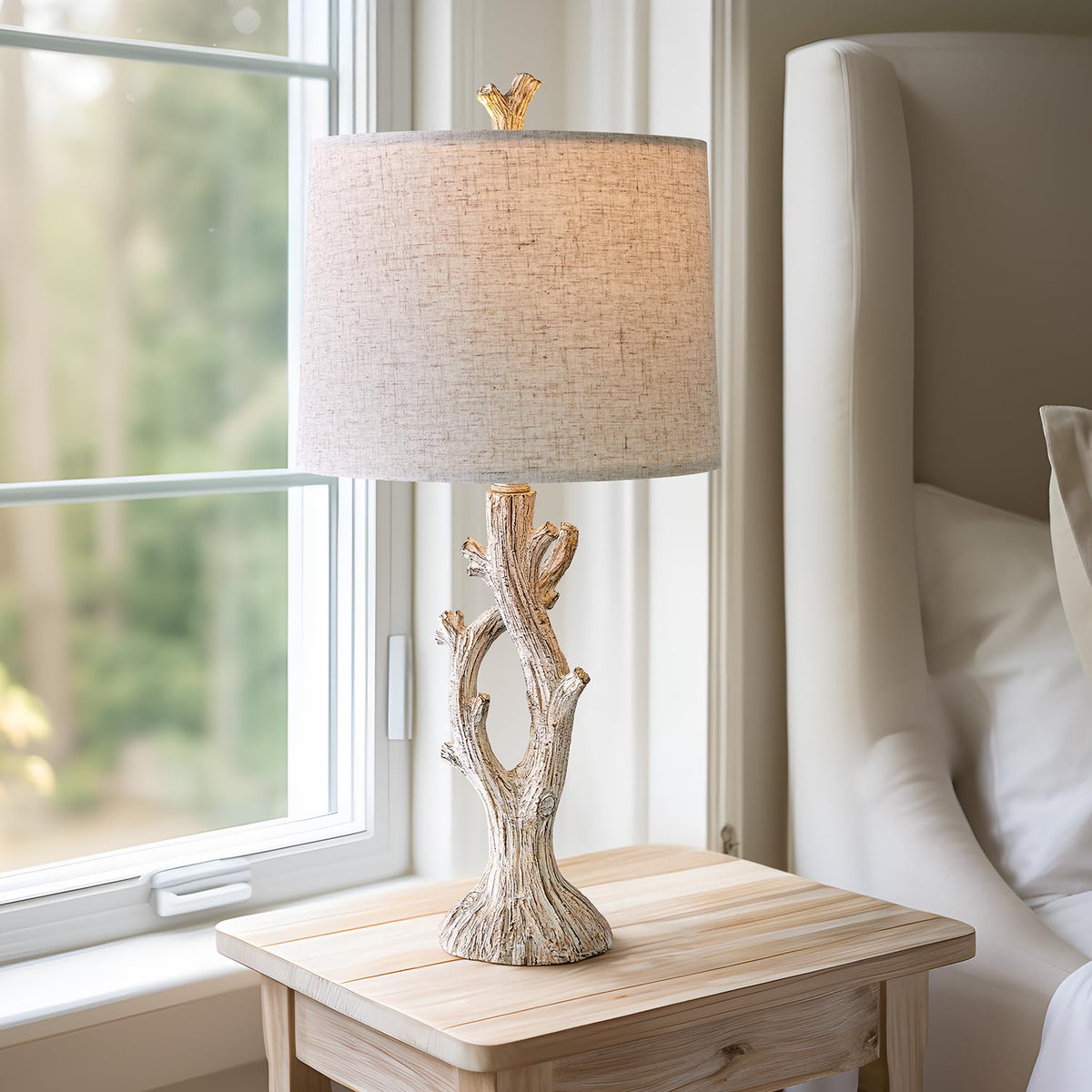 Oyears Farmhouse Table Lamps Set Of 2 For Living Room Bedroom Bedside Tree Lamp Nightstand End Table 25'' Lamps Vintage Natural