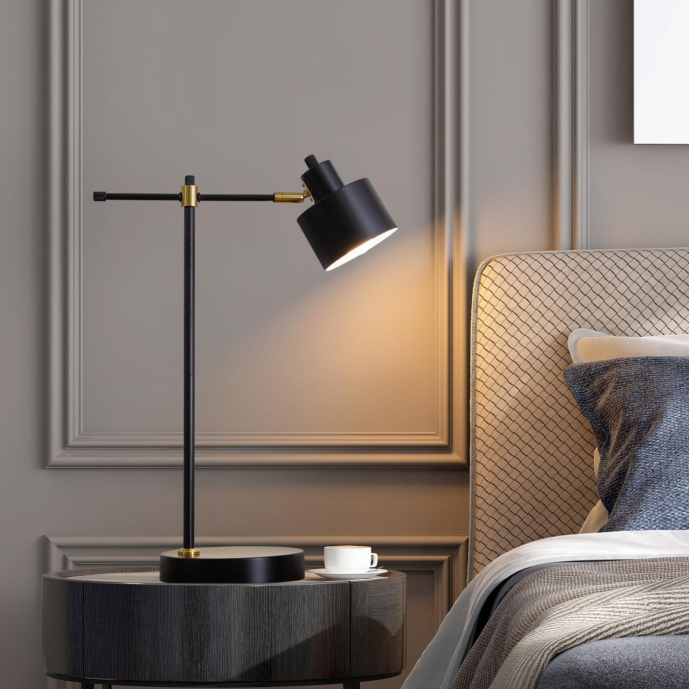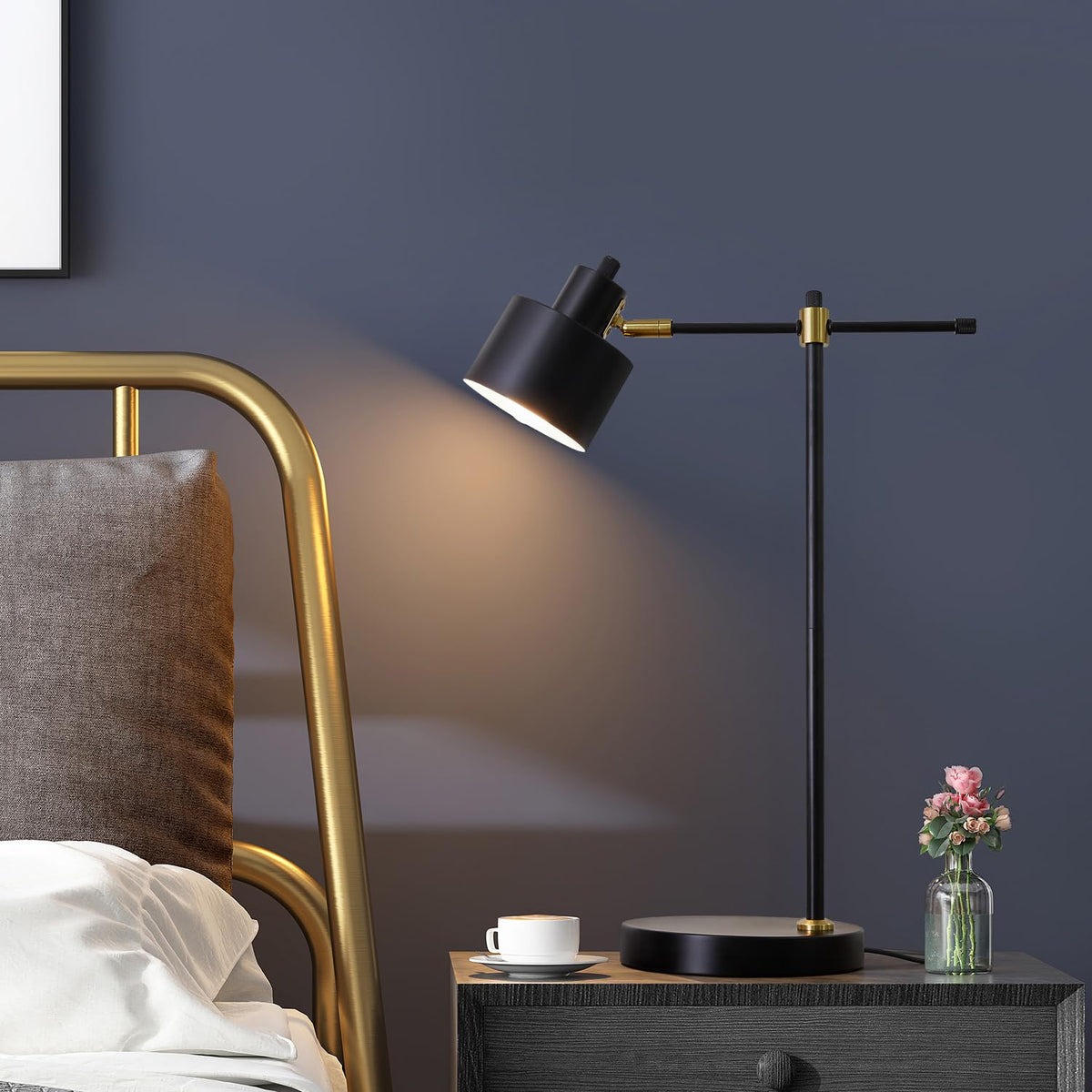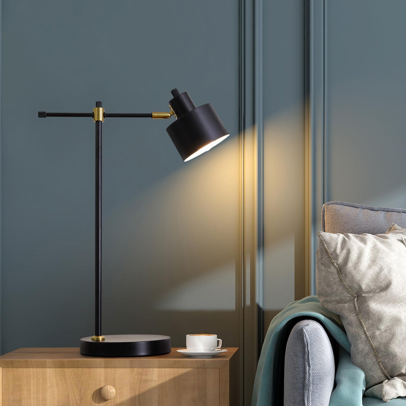 Oyears Industrial Led Desk Lamp - Modern Metal Table Lamp For Office & Bedroom, Black Accent