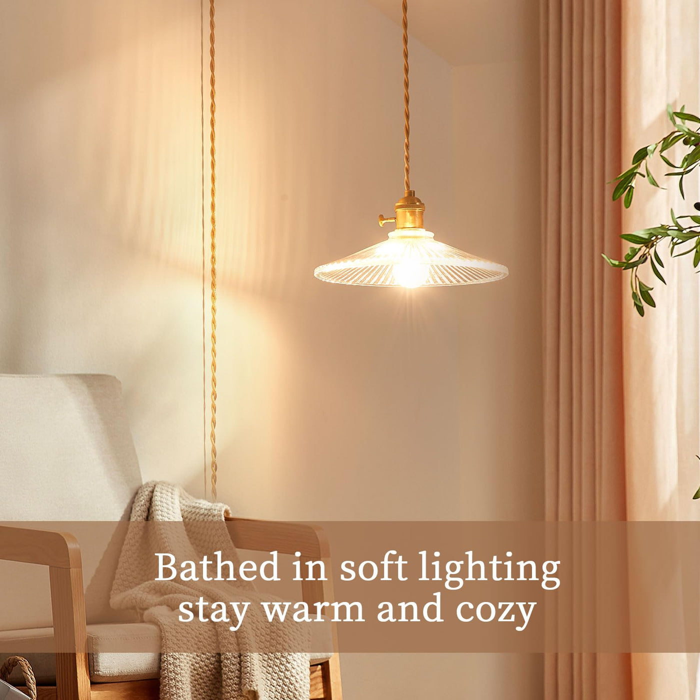 The Glass Chandelier With A Plug In Cord Can Be Placed Anywhere In Your Home. You Can Also Place Several Side By Side In The Dining Area To Provide An Elegant And Comfortable Environment. The Instructions In The Case And The Simple Inexquisite Design: This Plug In Pendant Light Features An Industrial Look And Distinctive Bedroom Minimalist Chandeliers With Cozy Warm Light; Accessorized With An Open-Bottom High Strength Glass Lampshade And Golden Basestallation Method Make It Easy For Anyone To Install.