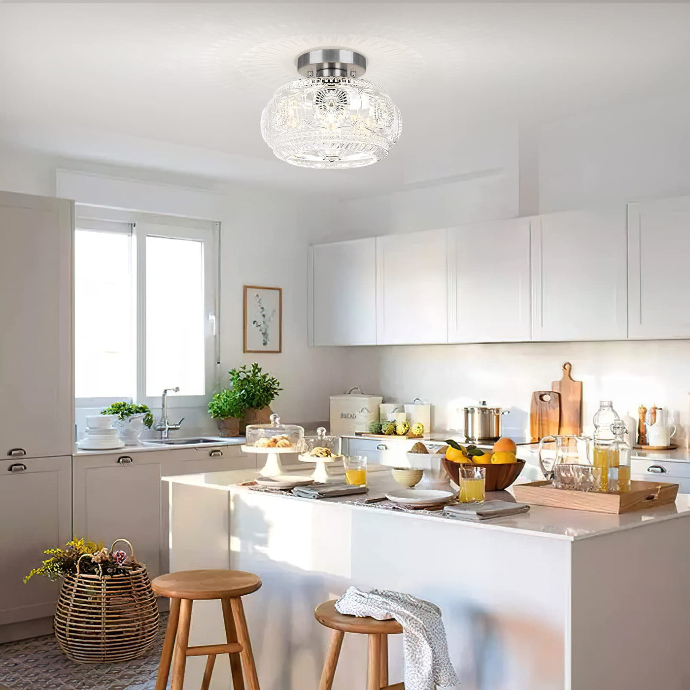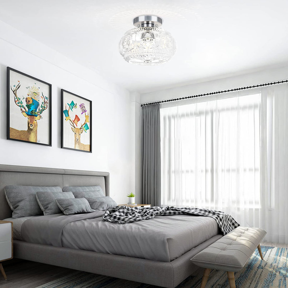 Oykyohei Brushed Nickel Semi Flush Mount Ceiling Light, Glass Shade Modern Ceiling Light Fixture, Lighting For Hallway Bedroom E