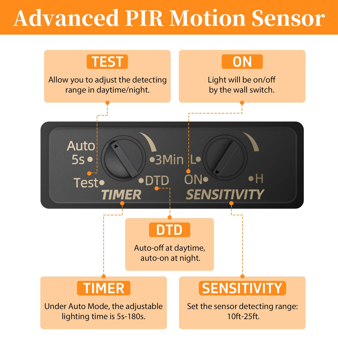Q: What are the different lighting modes available in the OYKYOHEI Motion Sensor Outdoor Ceiling Light?A: The OYKYOHEI Motion Sensor Outdoor Ceiling Light features four lighting modes: Auto Mode (motion sensor activates at dusk), Manual Override Mode (allows on/off control with a wall switch), Dusk to Dawn Mode (automatically turns on at dusk and off at dawn), and ON Mode (stays continuously on until turned off).
