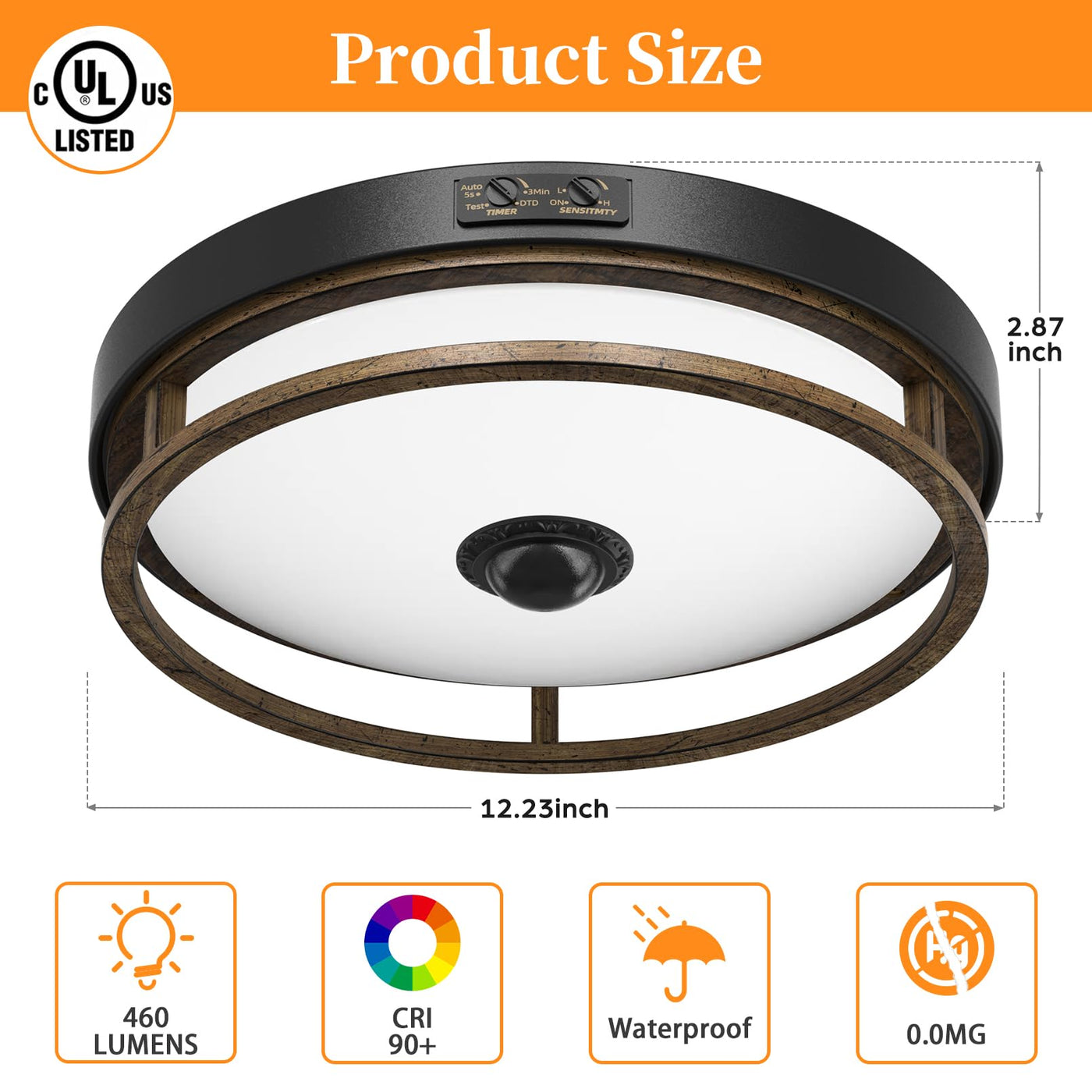 Oykyohei Motion Sensor Outdoor Ceiling Light, Outdoor Flush Mount Led Farmhouse Ceiling Light Fixtures, 12'' Dusk To Dawn Porch
