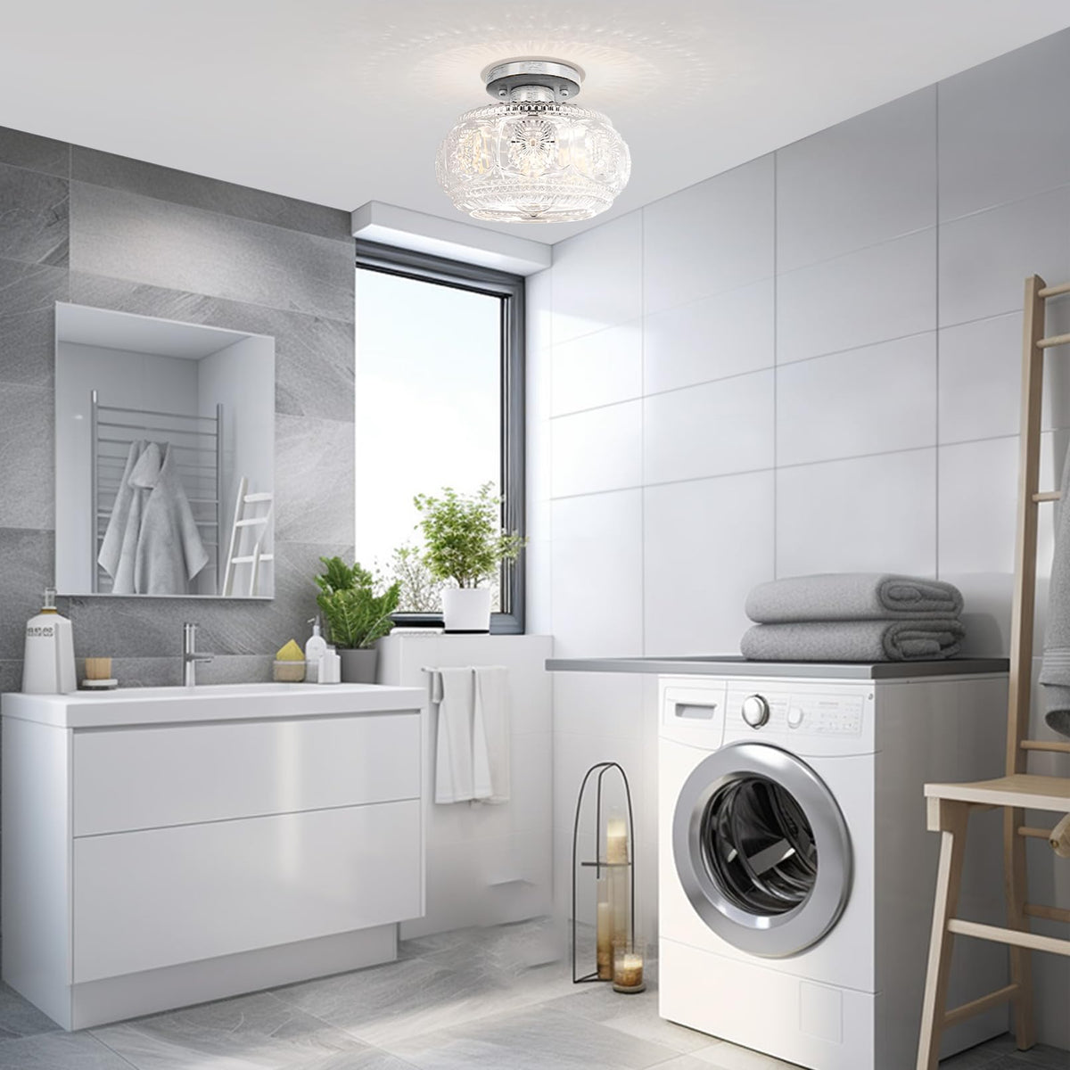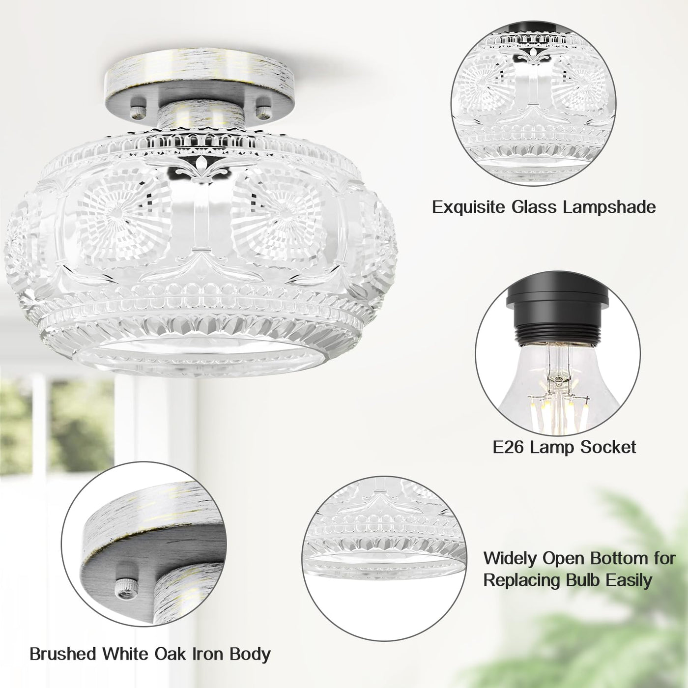 Q: What materials are used in the construction of the OYKYOHEI Semi Flush Mount Ceiling Light?A: The OYKYOHEI Semi Flush Mount Ceiling Light is crafted from premium materials, featuring a quality glass shade and a durable metal base, ensuring long-lasting use and aesthetic appeal.