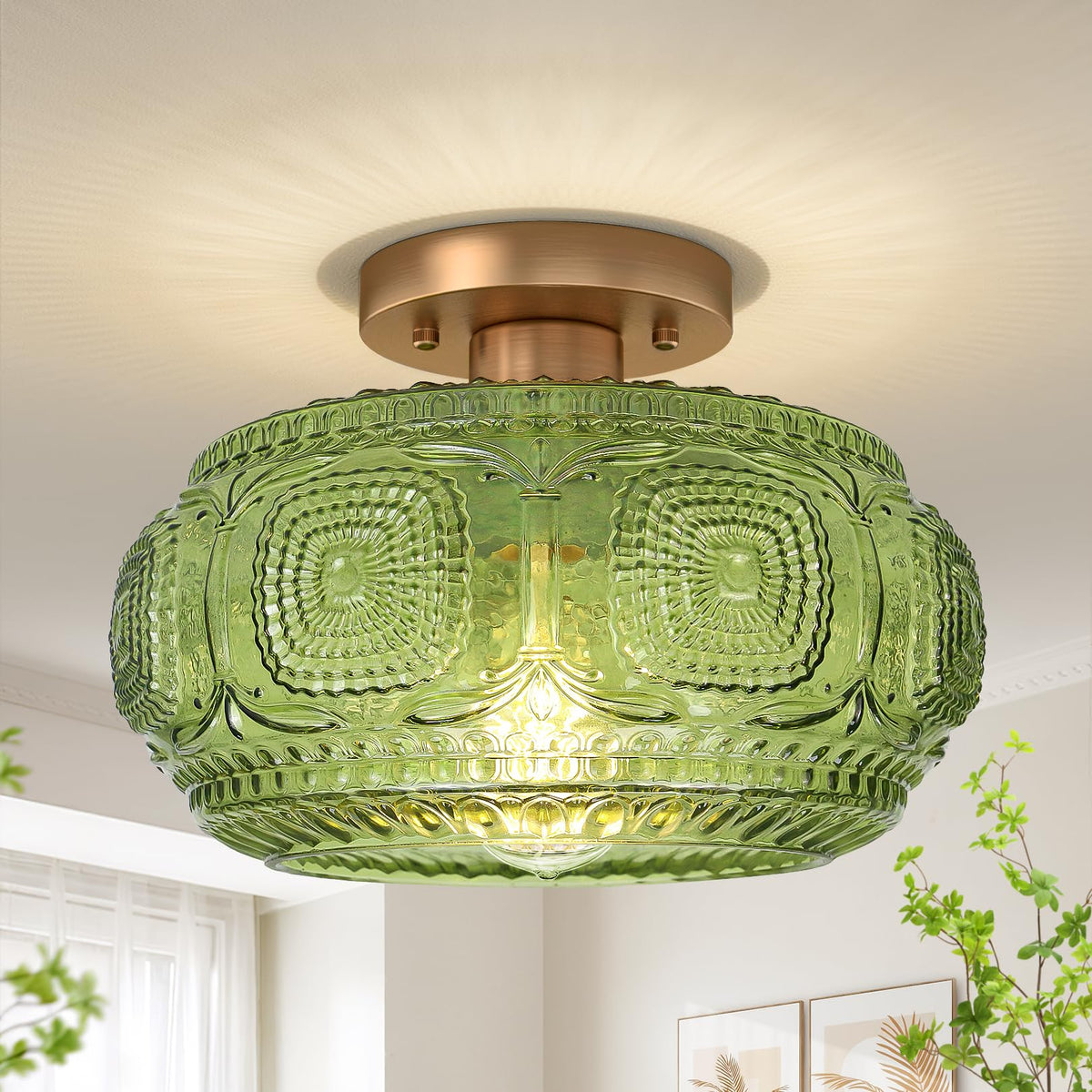 Illuminate your space with the OYKYOHEI Semi Flush Mount Ceiling Light. This upgraded larger green glass ceiling light fixture combines vintage charm with modern functionality, making it an ideal choice for various settings such as hallways, kitchens, bedrooms, and dining rooms. Enhance your home d?or while enjoying ample lighting.