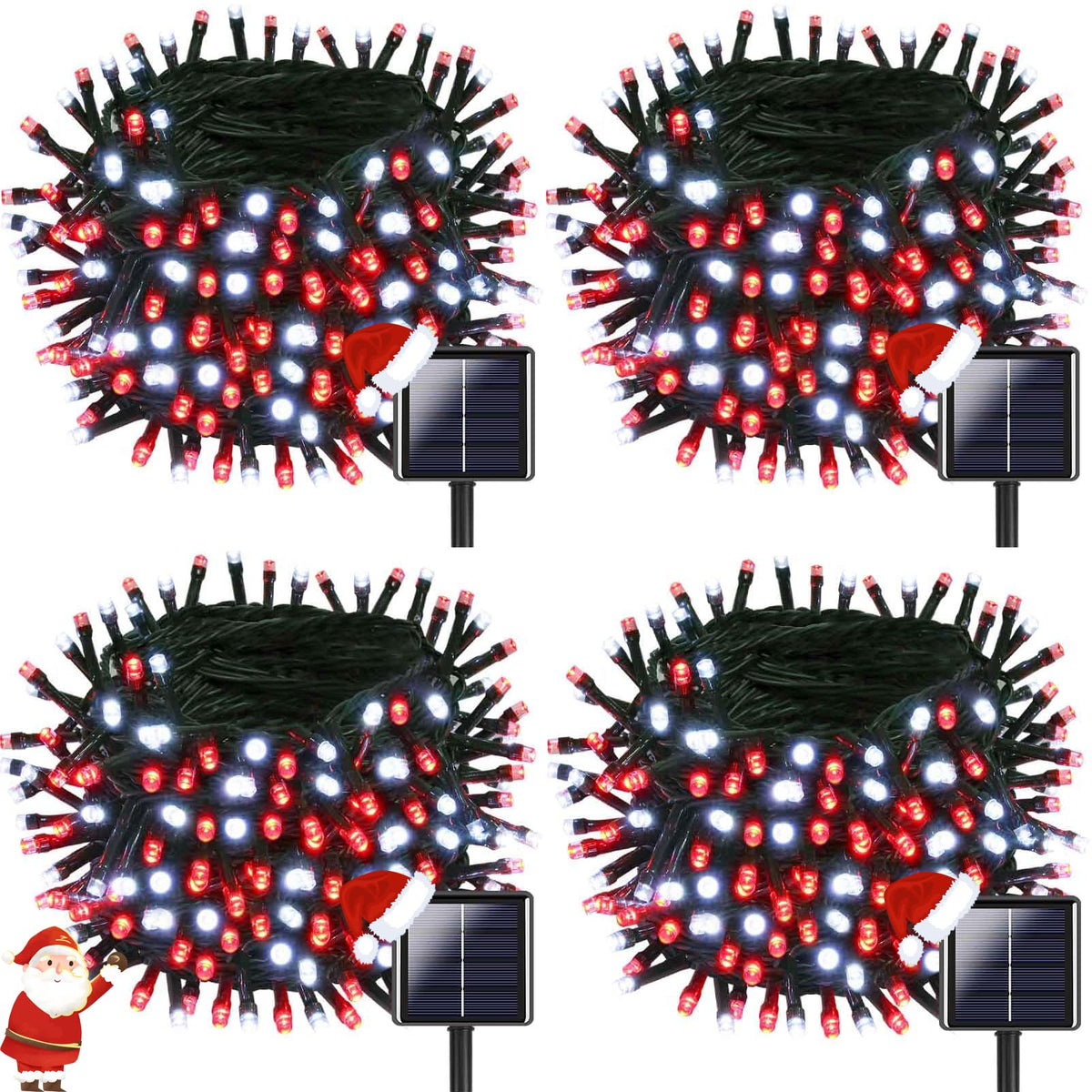 Ozs 4 Pack 320Led Solar Christmas String Lights Outdoor Waterproof 8 Modes Solar Tree Light Green Wire Christmas Lights Outdoor For Garden Party Wedding Christmas Decorations (Red&Cool White)