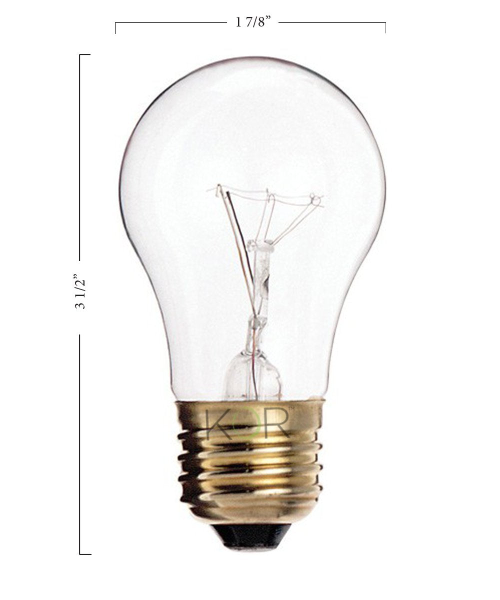 These Incandescent Appliance bulbs are 15 watt A15 Incandescent with a clear finish. The average rated lifetime is 2500 hours. They produce around 100 lumens, have a medium (E26) base (Which is a standard US household base size) and will work with a dimmer. They are ideally used in Ovens, Refrigerators, as well as other household appliances or fans.