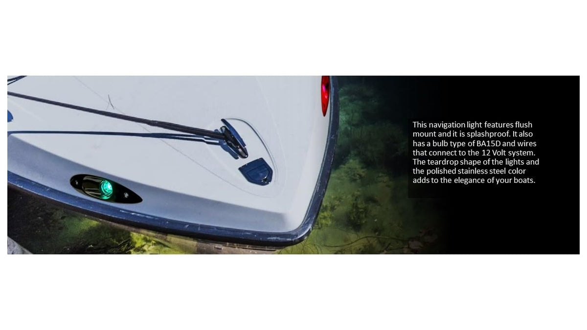 This is a pair of red & green LED navigation lights that have stainless steel recessed housings with rubber gaskets. | Length: 7.75" Inch; Width: 2.25" Inch; Recessed Depth 2.6" Inch | Material: Stainless Steel, Housing Color: SS, Bulb Type: BA15D | Light Color: Red Green, Working Voltage: 12V, Effective Lumen: Green: 61.5LM, Red: 19 LM | LED Beam Angle: 120 Degrees, Wattage: 1W (Green)/ 1W (Red), Visibility: 1NM. This is NOT LED product. Item number: P00195
