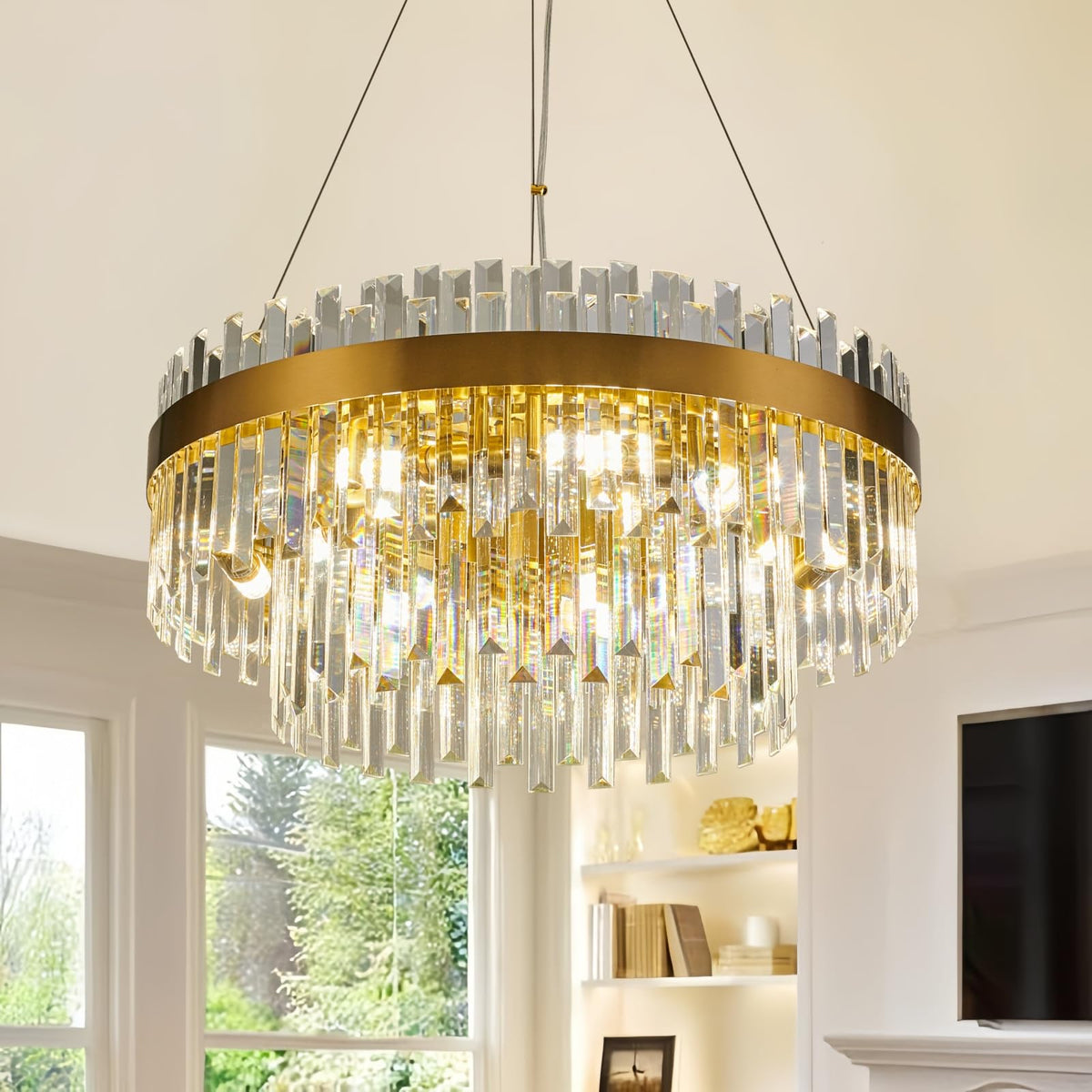 Pafee Modern 6-Light Gold 2-Tier K9 Crystal Chandelier - 20'' Round Chandelier Lighting Fixture For Dining Living Room Kitchen I
