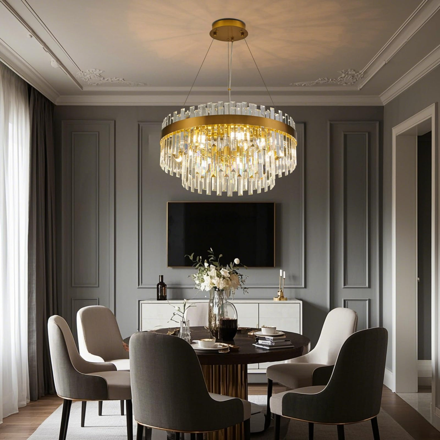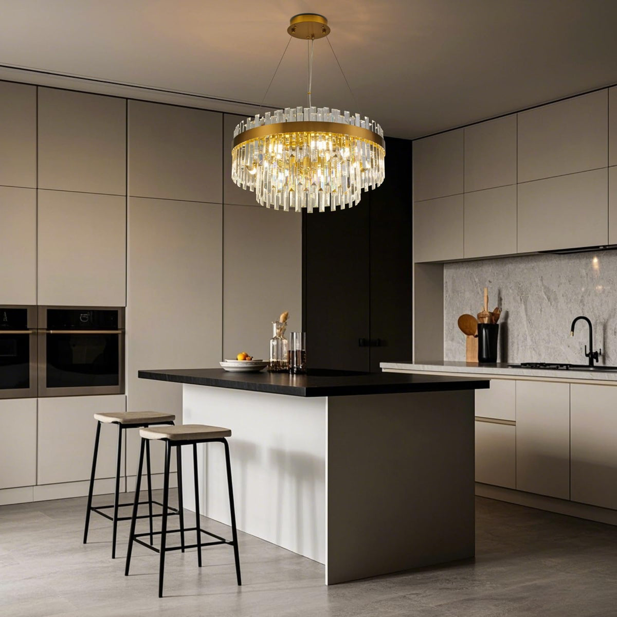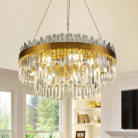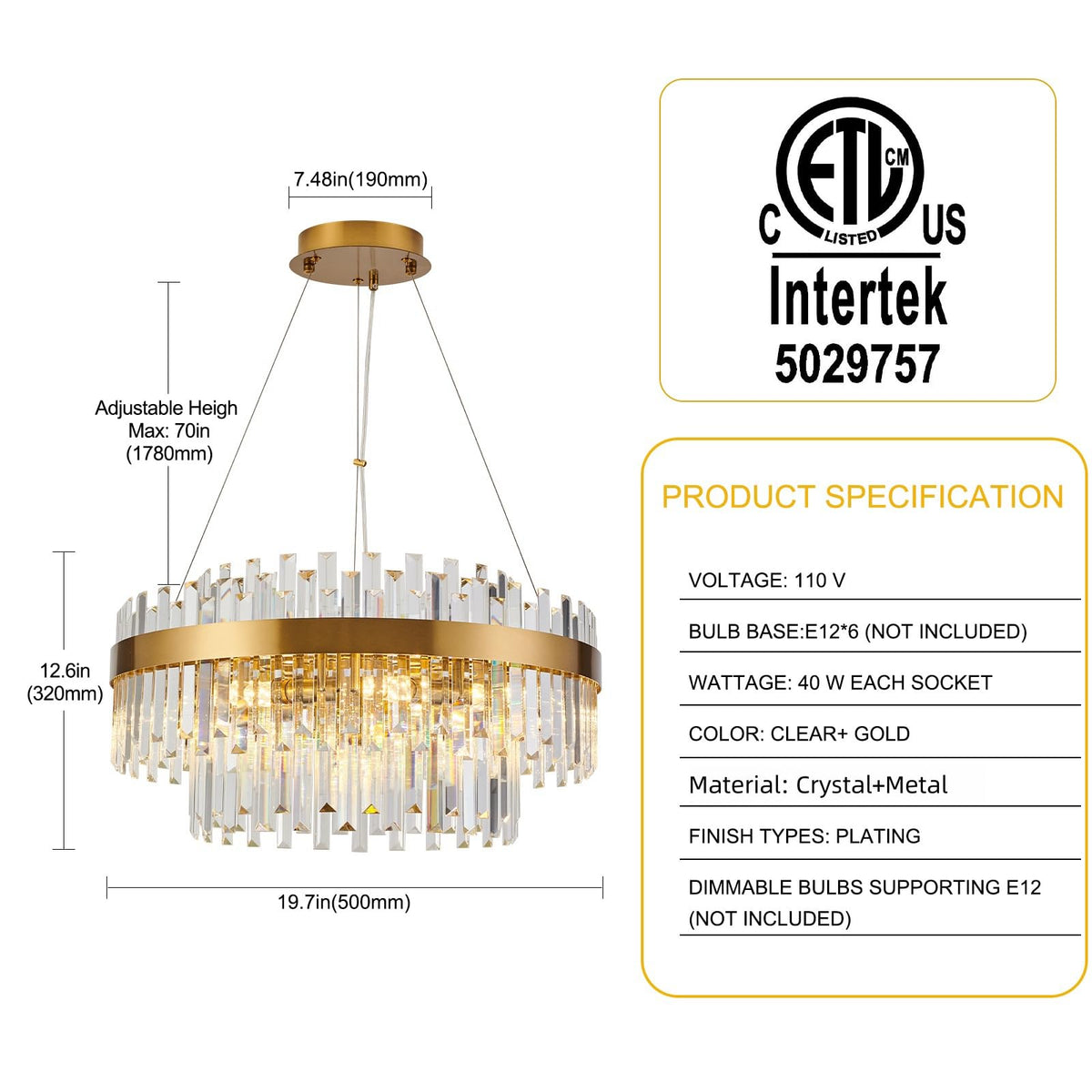 Our Modern Crystal Chandelier, A Perfect Blend Of Modern Elegance And Vintage Charm. This 2-Tier Crystal Island Light Fixture Adds A Touch Of Sophistication To Any Space, Be It Your Kitchen Island, Living Room, Dining Room, Or Bedroom. With Its Timeless , Making It An Ideal Choice For Both Contemporary And Vintage Settings. Elevate Your Home'S Aesthetic With Our 6 Light Modern Gold Chandelier.Crafted With High-Quality Materials, This Chandelier Showcases A Stunning Crystal Centerpiece That Radiates A Warm And Inviting Glow, Creating A Captivating Ambiance. Solid Metal In Gold Plating Finish Make Sure Long Time, It Seamlessly Complements Any Decor Style, Whether You'Re Looking For A Chandelier For Your Dining Room, Living Room, Or High Ceiling Space, This Light Fixture Is Sure To Impress.