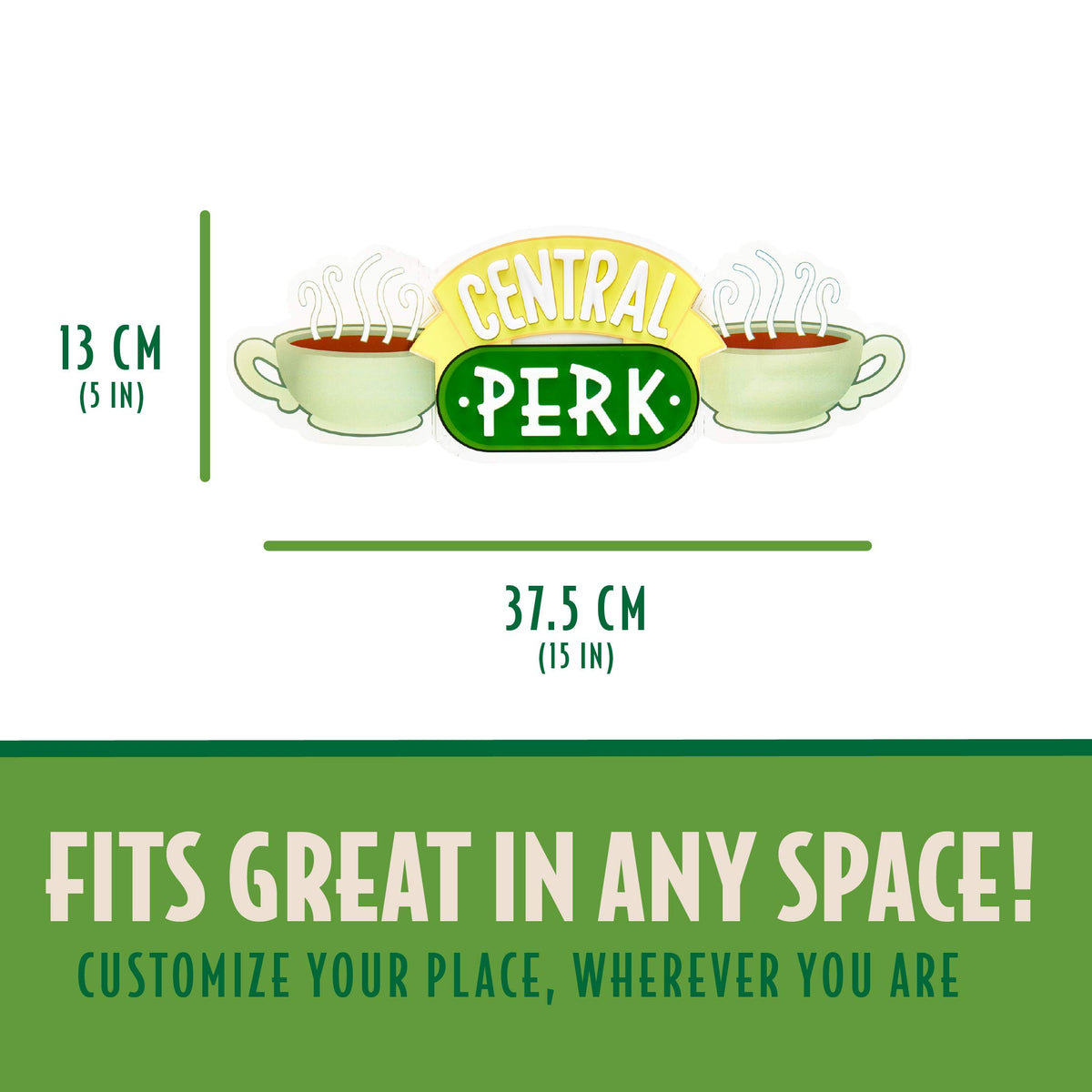 FRIENDS DECOR: Reminisce on your favorite TV show with this Central Perk Neon Light. Featuring the iconic Central Perk logo, this light will make any fan of the series smile. | DETAILS: The Central Perk Neon Light comes with a wall mount. Measures approximately 38cm wide and 13cm tall. It also comes with a USB cable to power the light. | LIGHT THE NIGHT: Use this nightlight as a desk lamp on the nightstand by your bed. It’s a perfect way to illuminate your man cave, bedroom, baby nursery, toddler’s playroom, or themed home theater. | OFFICIALLY LICENSED: This quality collectible is a unique addition to any fan's set. Give this cool collector's merchandise to moms, dads, fans, grads, kids, guys, and gals who love pop culture fun!