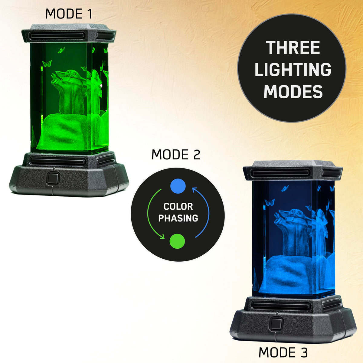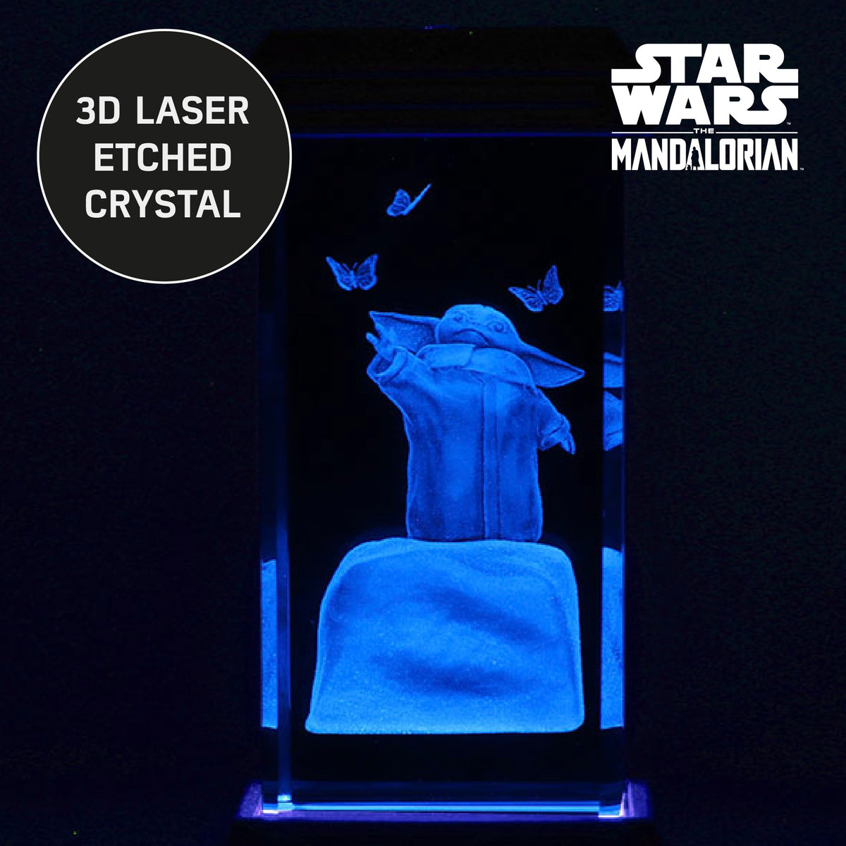 Paladone Grogu Holographic Light, 3D Laser-Etched Crystal Model of Grogu from The Mandalorian, 12cm (4.7'') Tall Lighting and St