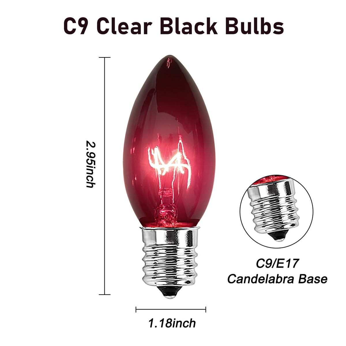 - **Safety First**: UL listed for safety, these outdoor purple light bulbs comply with industry standards. Each pack contains 25 C9 dark purple bulbs with a C9/E17 candelabra socket base, ensuring compatibility with a wide range of lighting fixtures.
