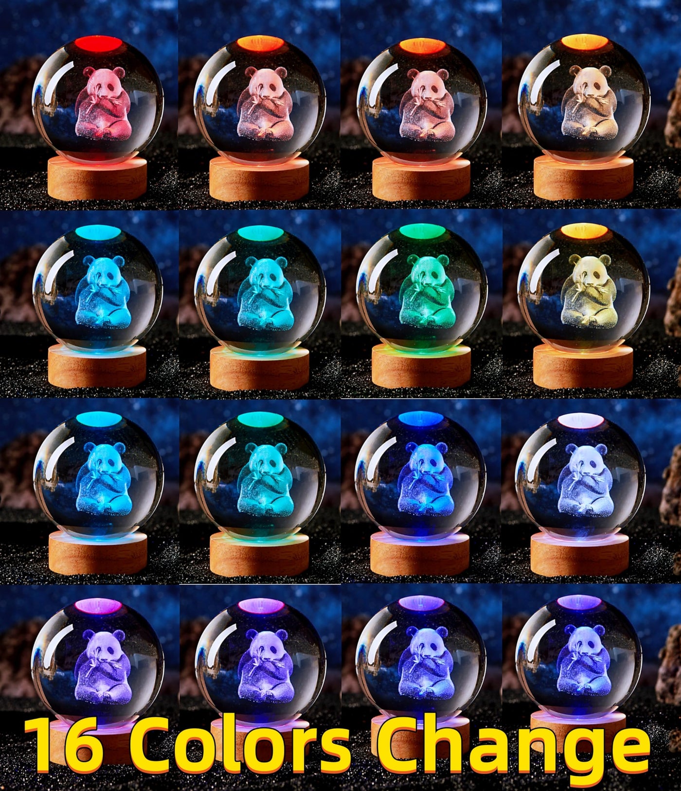 Panda Crystal Ball Lamp,3.15 Inch 3D K9 Crystal Ball Panda Night Light,16 Colors Changing Light,Dimmable Remote Control,Panda La