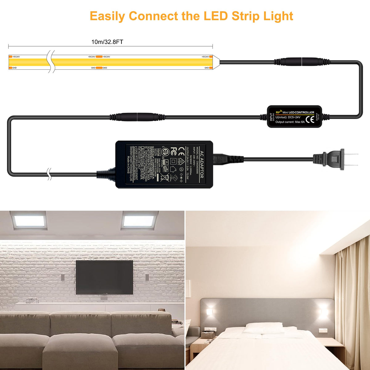 Featuring a high-density arrangement of 320 LEDs per meter, this COB LED strip ensures ultra-high luminous efficiency while maintaining a low operating temperature. With an easy plug-and-play installation process, users can quickly set up the strip in their desired location. The flexible design allows for bending and cutting to fit various lengths, making it a versatile choice for any lighting project.