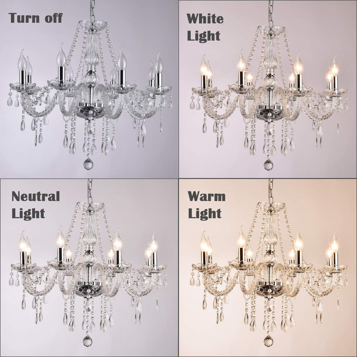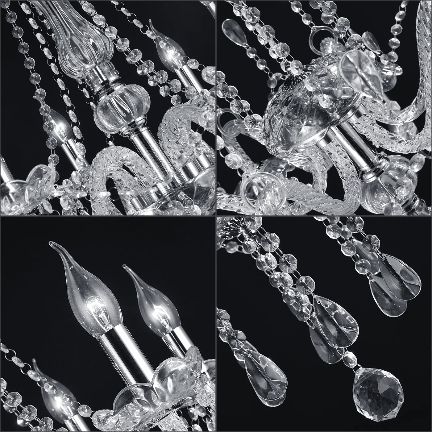 K9 Crystal Candle Chandelier:Made Of Glass And Luxury K9 Crystal, Modern And Elegant With Lots Of Sparkle.Nothing Is Quite As Elegant As The Crystal Chandeliers That Gave Sparkle To Brilliant Evenings At Palaces And Houses | Elegant Decoration:You Will Fell In Love With This Chandelier Once You Saw It Online And It Can Creative A Romantic Atmosphere And Gave Soft Sparkle To Brilliant Evenings | E12 Bulb Required: It Is E12 Bulb Base, Can Use E12 Halogen Bulbs,E12 Dimmable Bulbs,E12 Energy Saving Bulb And So On(Bulbs Not Included) | With Adjustable Chain,You Can Adjust The Light Length To Meet Your Need. | Installation:Need Assembly By The Customer Includes The Wiring, Professional Installation Is Recommended. Installation Video Shows In The Link(Manual Also Include Installation Link,You Can Open Seperately )If You Need Any Help Please Feel Free To Contact Us