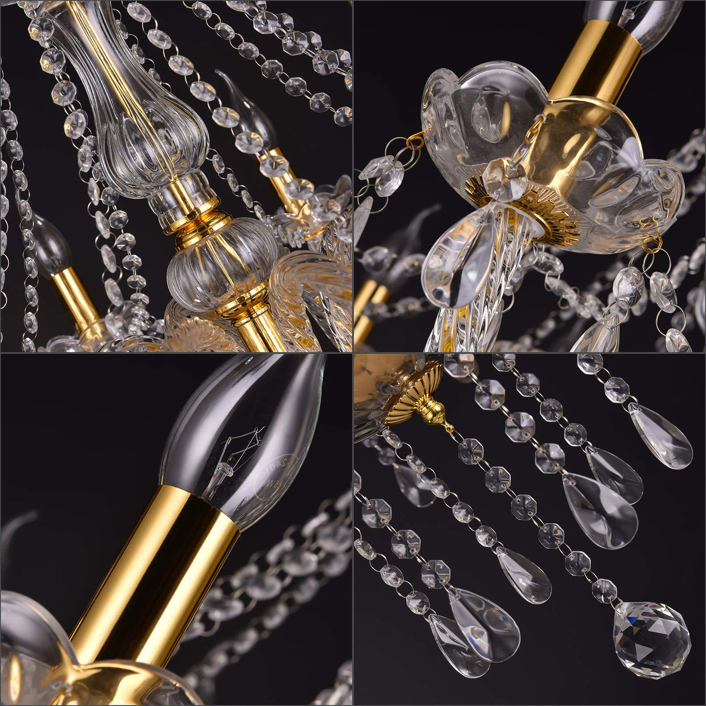 Classic European Crystal Light And Candle Shape, Nice Light Decors For For Home Living Room,Hall,Corridor,Balcony,Entrance. | This Modern Chandelier Is Trimmed With Crystal And Candelabra Bulbs;Nothing Is Quite As Elegant As The Crystal Chandeliers That Gave Sparkle To Brilliant Evenings At Palaces And Houses. | With Adjustable Chain,You Can Adjust The Light Lenght To Meet Your Need. | You Will Fell In Love With This Chandelier Once You Saw It Online And It Can Creative A Romantic Atmosphere And Gave Soft Sparkle To Brilliant Evenings | It Is E12 Bulb Base, Can Use E12 Halogen Bulbs,E12 Dimmable Bulbs,E12 Energy Saving Bulb And So On(Bulbs Not Included)