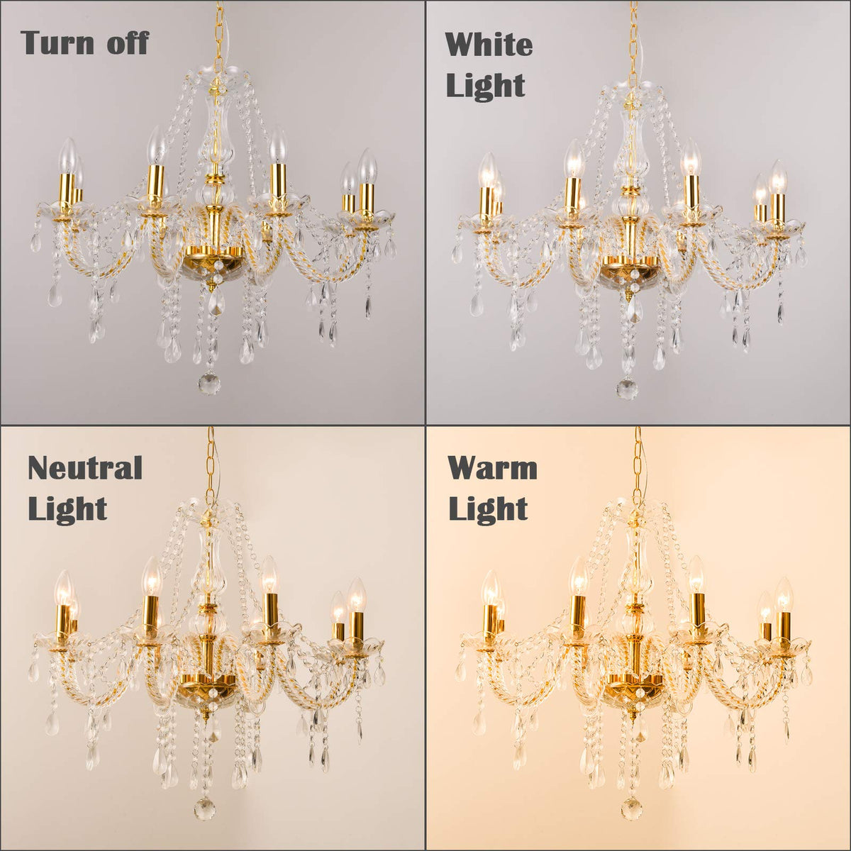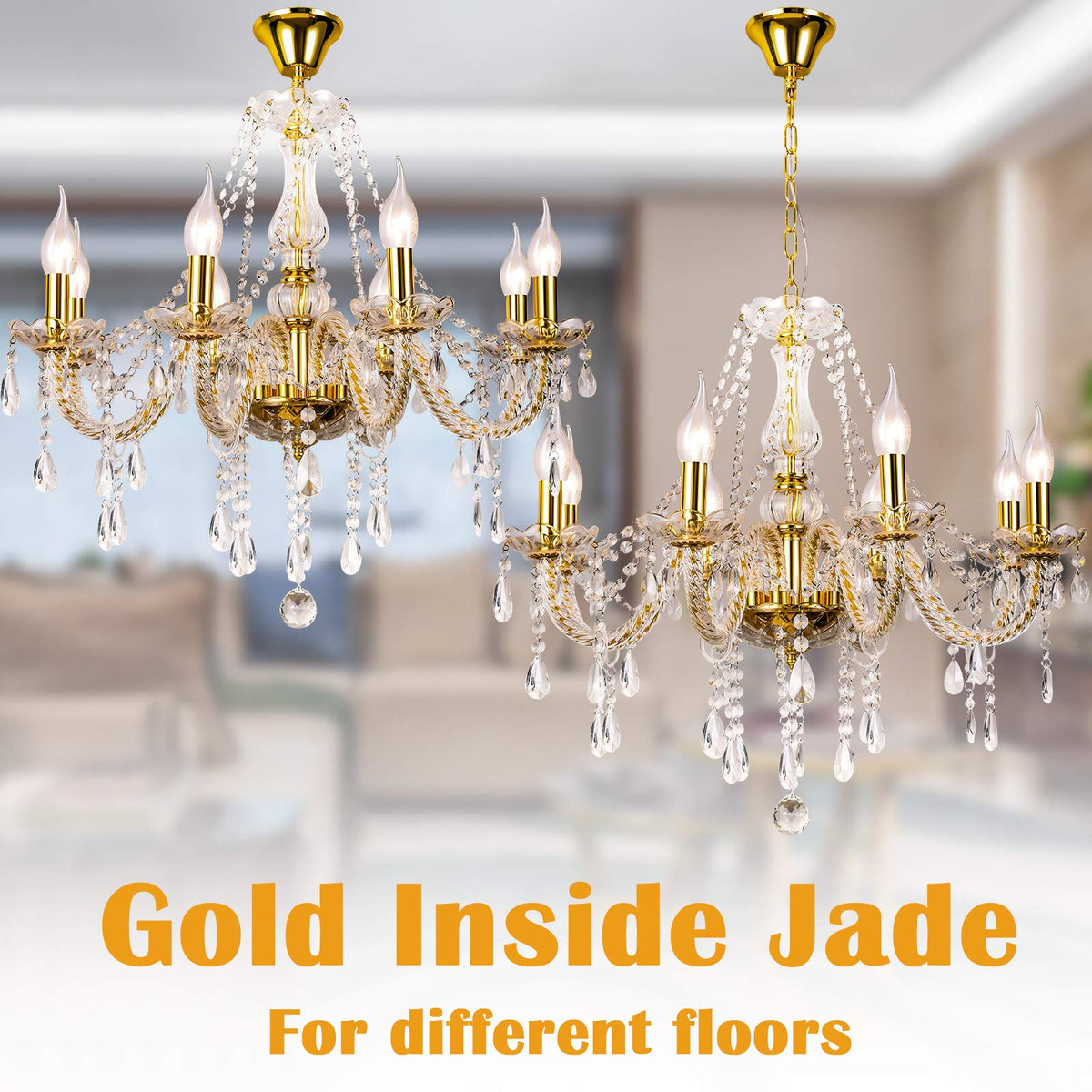 K9 Crystal Candle Chandelier:Made Of Glass And Luxury K9 Crystal, Modern And Elegant With Lots Of Sparkle.Nothing Is Quite As Elegant As The Crystal Chandeliers That Gave Sparkle To Brilliant Evenings At Palaces And Houses | E12 Bulb Required: It Is E12 Bulb Base, Can Use E12 Halogen Bulbs,E12 Dimmable Bulbs,E12 Energy Saving Bulb And So On(Bulbs Not Included) | Elegant Decoration:Classic European Crystal Light And Candle Shape, Nice Light Decors For For Home Living Room,Hall,Corridor,Balcony,Entrance,You Will Fell In Love With This Chandelier Which Can Creative A Romantic Atmosphere And Gave Soft Sparkle To Brilliant Evenings | Installation:Need Assembly By The Customer Includes The Wiring, Professional Installation Is Recommended. Installation Video Shows In The Link(Manual Also Include Installation Link,You Can Open Seperately )If You Need Any Help Please Feel Free To Contact Us | Product Size:With Adjustable Chain,You Can Adjust The Light Lenght To Meet Your Needs;8 Crystal Lamps Inch Size(Fx H): 23.6In X 23.7In