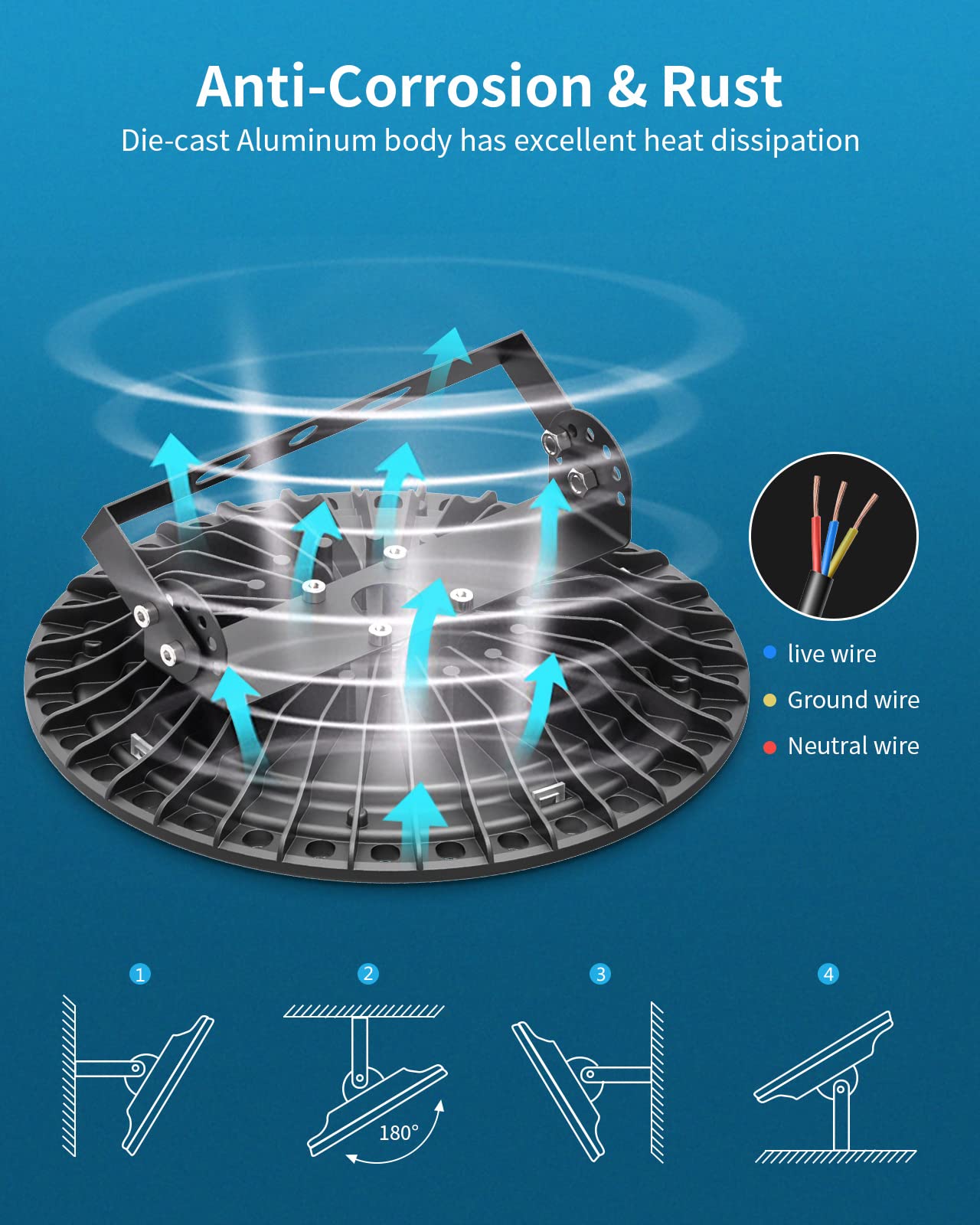 Super Bright: With a luminous output of 10,000 lumens at 100W and a color temperature of 6000K-6500K, our LED high bay lights deliver unparalleled brightness and clarity.