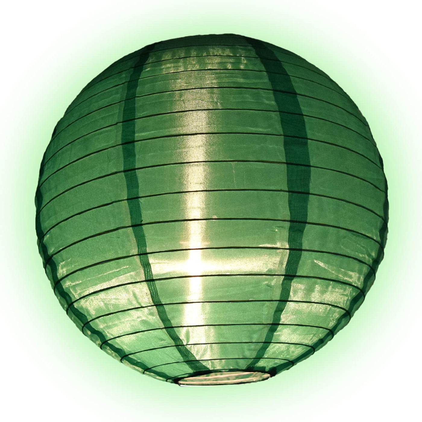 This Dark Green Nylon Lantern Is Durable And Long Lasting. This Lantern Has A Shimmer To It Which Regular Paper Lanterns Do Not Have. Great For Outdoors, This Lantern Is Much More Durable Outdoors Than Regular Paper Lanterns. Dimensions: 14''D (All Lanterns Sold Without Cord, Cord Must Be Purchased Separately)