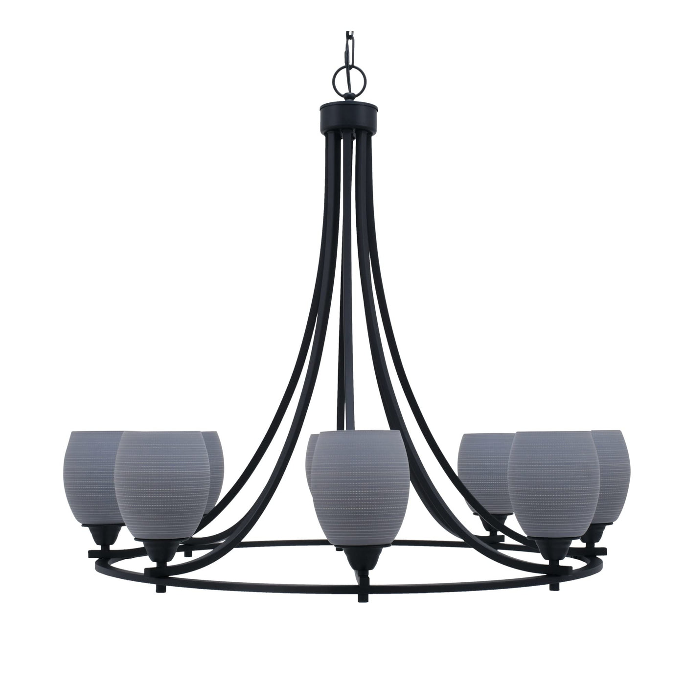Paramount Uplight, 8 Light, Chandelier In Matte Black Finish With 5 Gray Matrix Glass