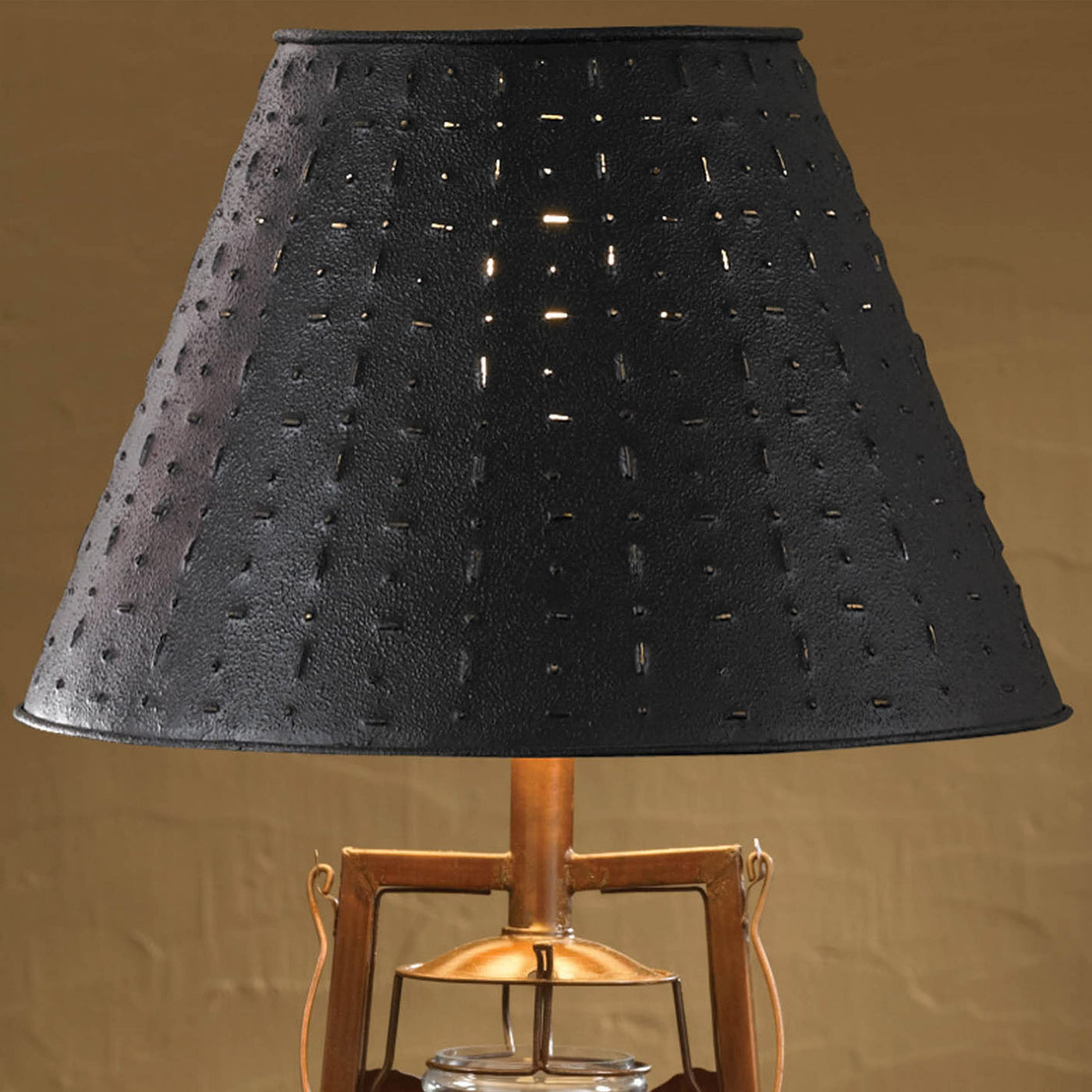 This Shade Features A Punched Dot And Dash Pattern That Allows Small Beads Of Light To Filter Through. The Shade Is Crafted From Metal And Hand Painted With A Washer Fitting For Use With A Harp And Finial. A Perfect Addition To A Rustic Or Country Home That Will Accent A Lamp Beautifully.