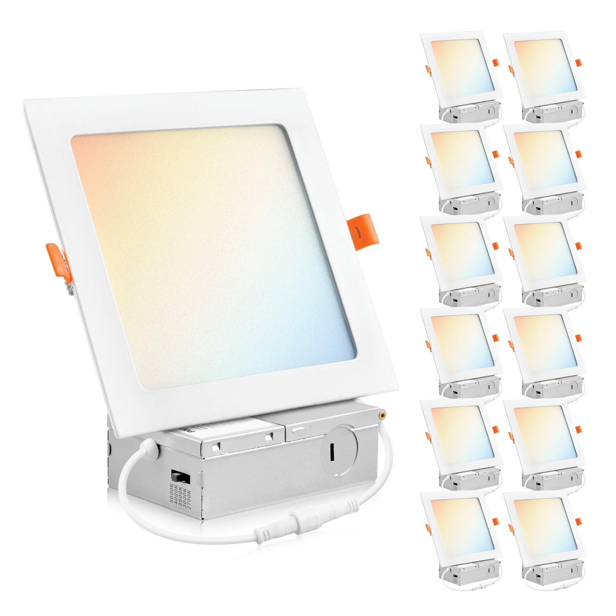 Parmida (12 Pack) 6 Inch Square 5Cct Ultra Thin Led Recessed Lighting With Junction Box, 2700K/3000K/3500K/4000K/5000K 5 Color S