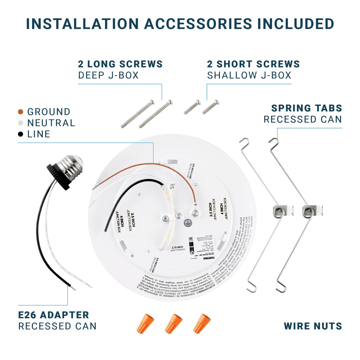 Q: What are the installation options for the PARMIDA LED Disk Light?A: The PARMIDA LED Disk Light can be easily installed into any 5 or 6 inch recessed can or any 2.75, 3.5, or 4 inch junction box. All necessary accessories for both installation methods are included with your purchase.