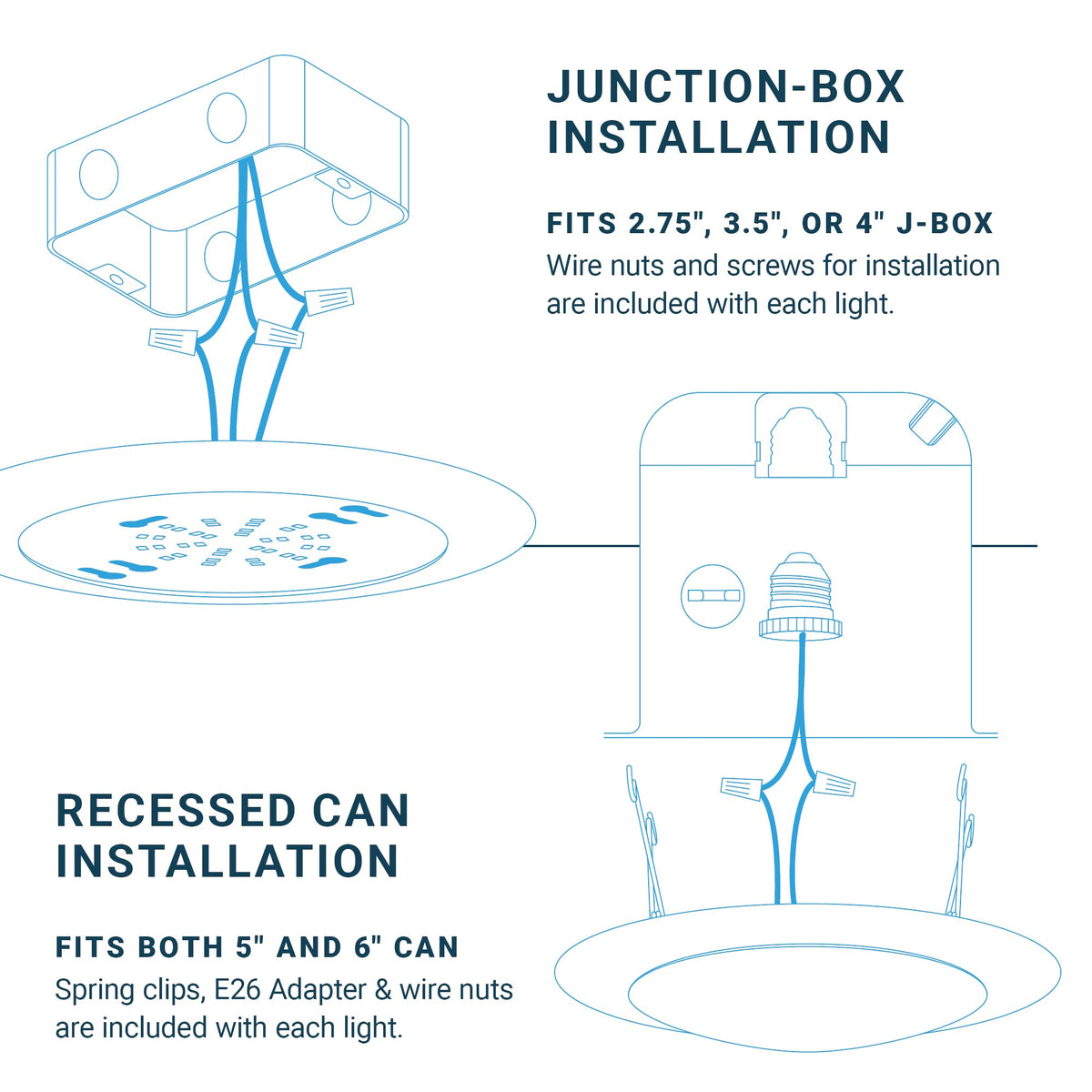 Q: What is the installation process for the Parmida 5/6 Inch Dimmable LED Disk Light?A: The Parmida LED Disk Light can be easily installed into any 5 or 6 inch recessed can or a 2.75, 3.5, or 4 inch junction box. All necessary accessories for both installation options are included with your purchase, making the setup straightforward and hassle-free.