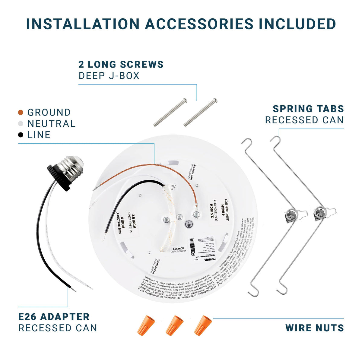 Q: What types of junction boxes are compatible with the Parmida LED Disk Light?A: The Parmida LED Disk Light can be installed into any 2.75, 3.5, or 4 inch Junction Box, making it versatile for different installation setups.