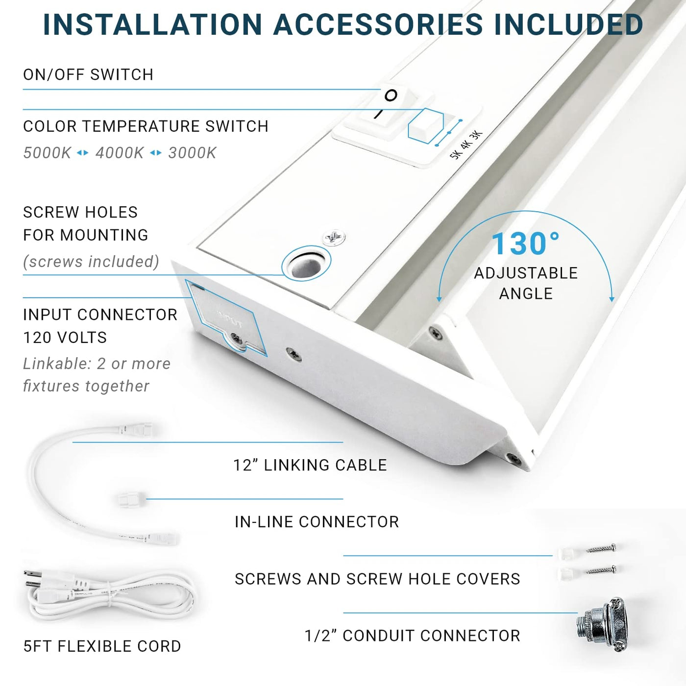 Parmida Led Swivel Under Cabinet Lighting, Hardwired Or Plug-In Installation, 42 Inch, 22W, 3Cct Color Selectable - 3000/4000K/5