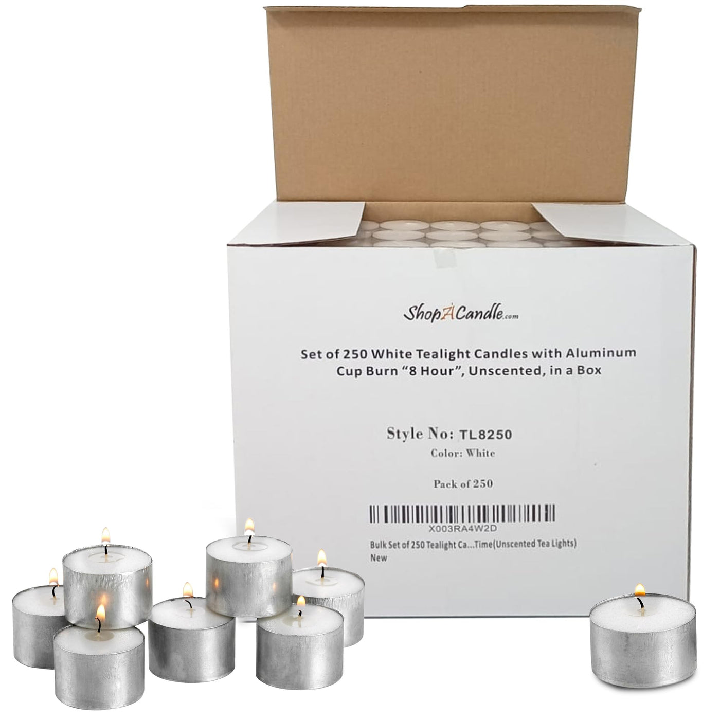 Parnoo White Tea Light Candles, 250 Pcs – 8-Hour Long Burn Time Small Candles, No Soot, Unscented With Cotton Wick In Metal Cups – Bulk Pack Of Candles For Romantic Dinners, Weddings, Spas, & Hotels