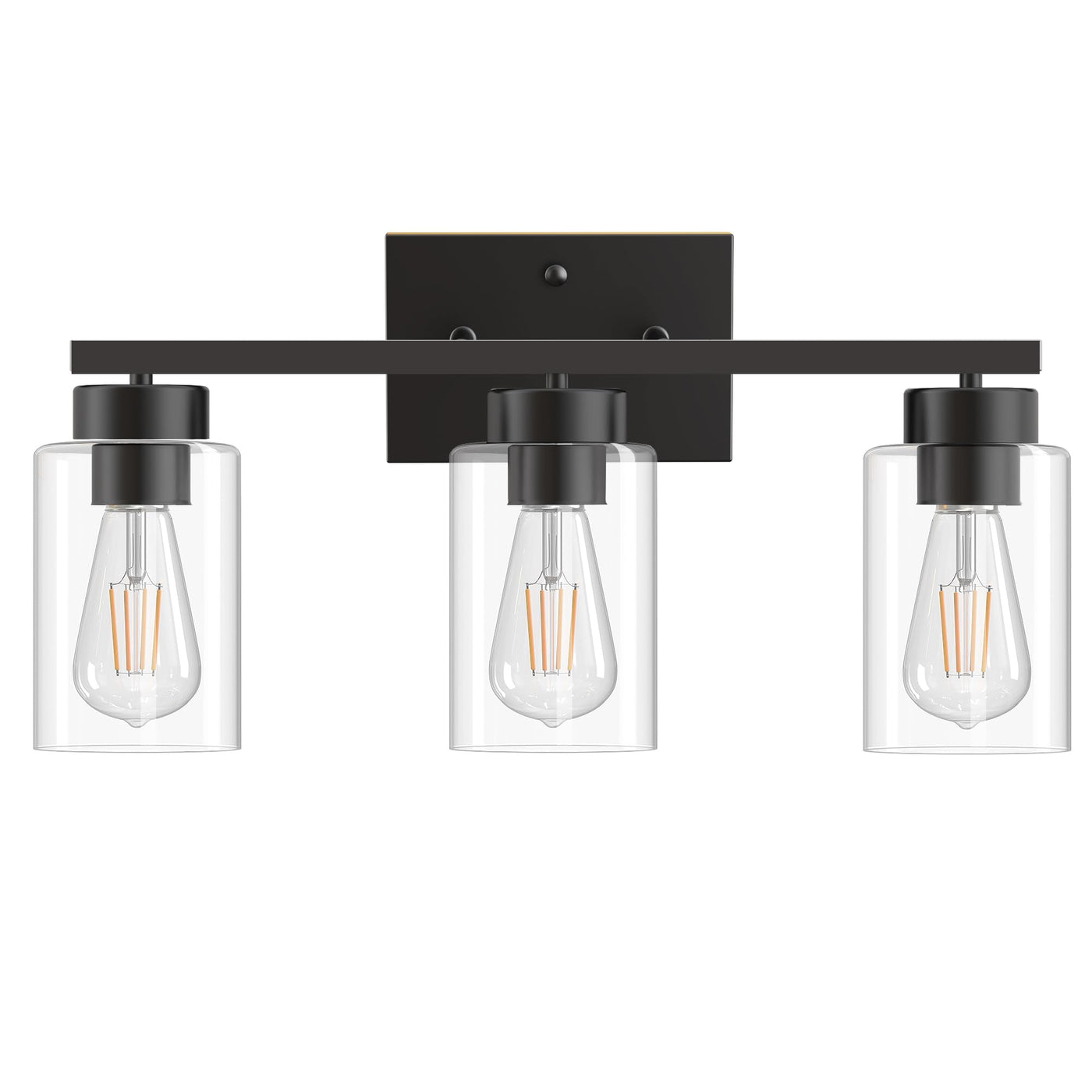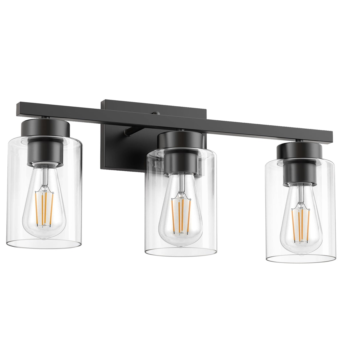 Partphoner 3-Light Bathroom Light Fixtures Matte Black Vanity Light With Clear Glass Shade Modern Wall Sconce For Mirror Bedroom Living Room Hallway Lighting