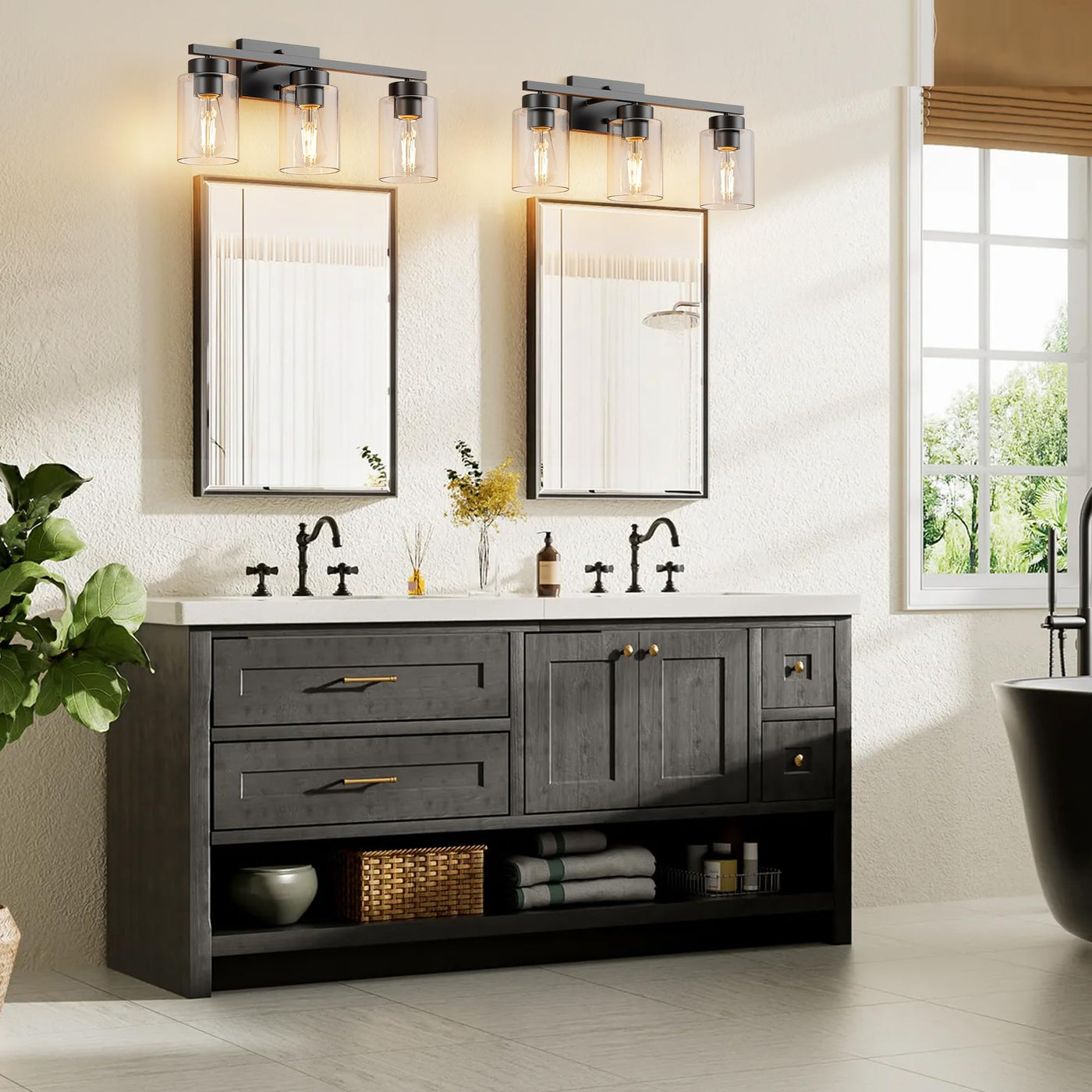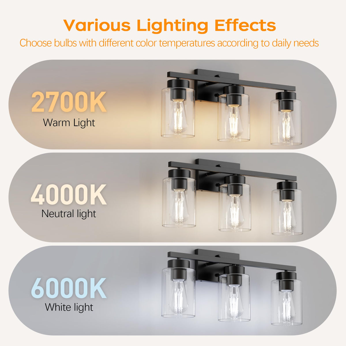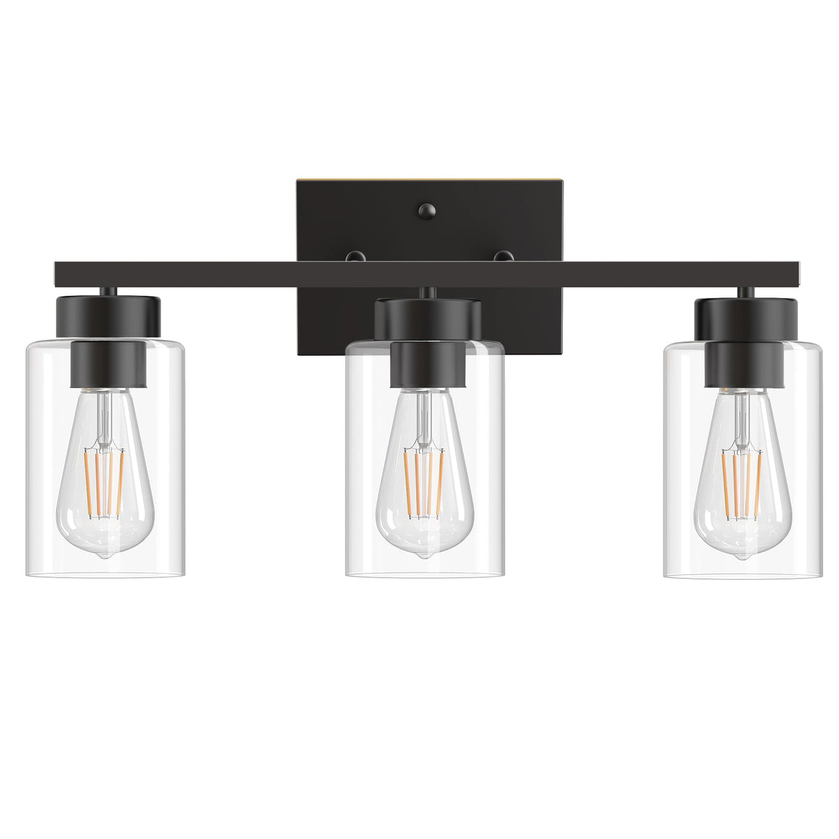 3-Light Bathroom Light Fixtures Matte Black Vanity Light With Clear Glass Shade Modern Wall Sconce For Mirror Bedroom Living Room Hallway Lighting