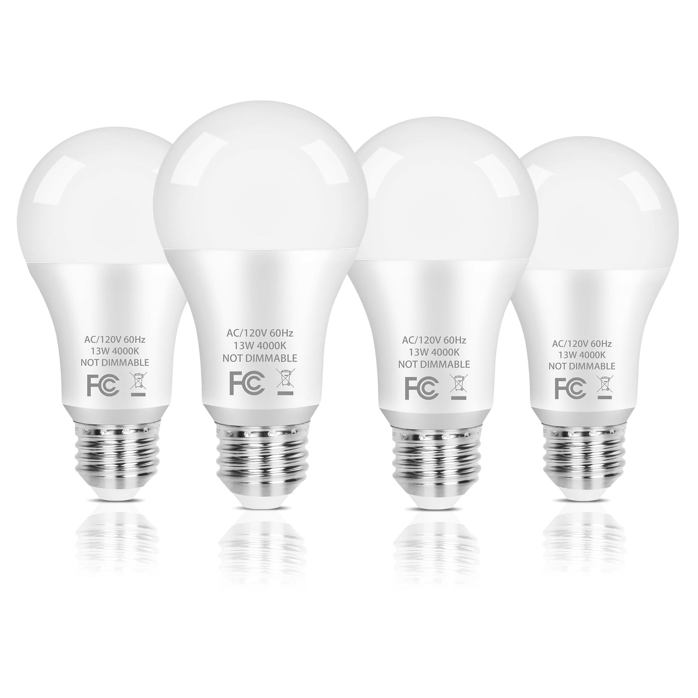 Partphoner A19 Led Light Bulb, 100 Watt Equivalent Led Bulbs, 13W Neutral White 4000K, 1500Lm, E26 Standard Base Non-Dimmable White Led Light Bulb, Cri 85+, 4-Pack