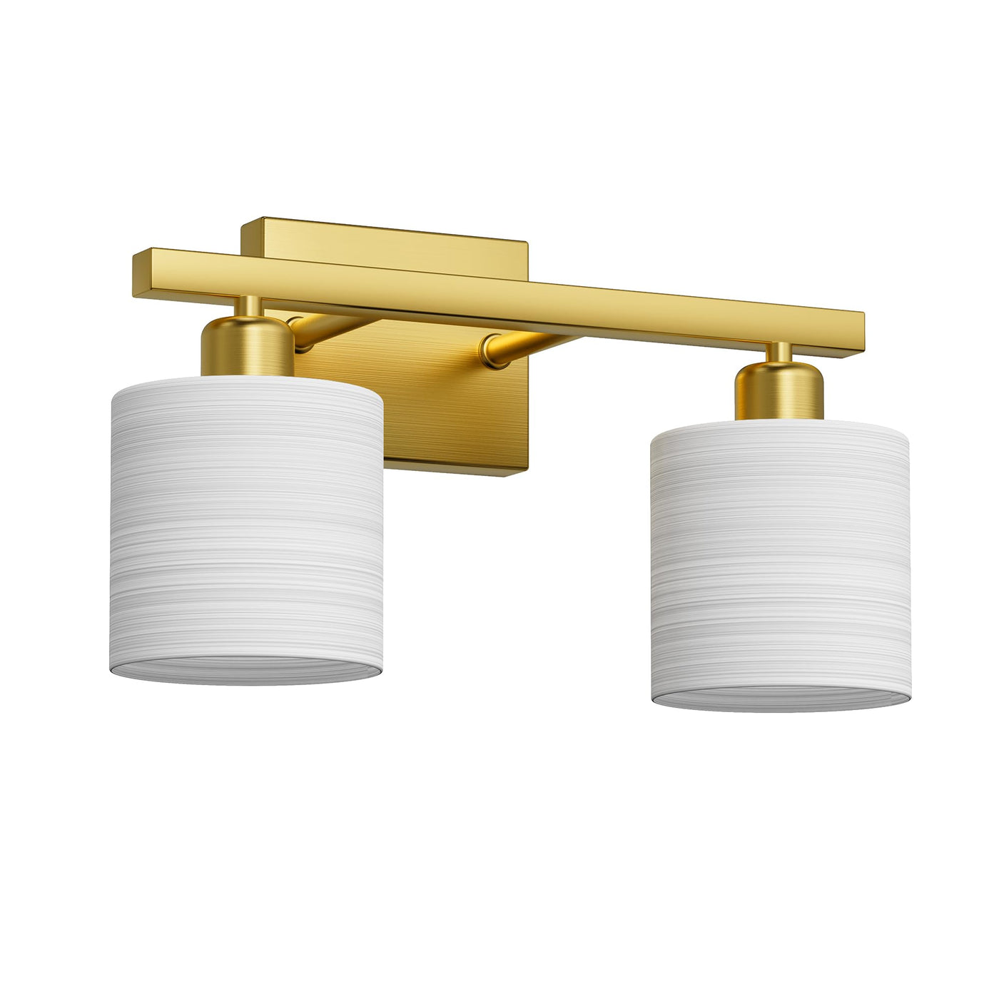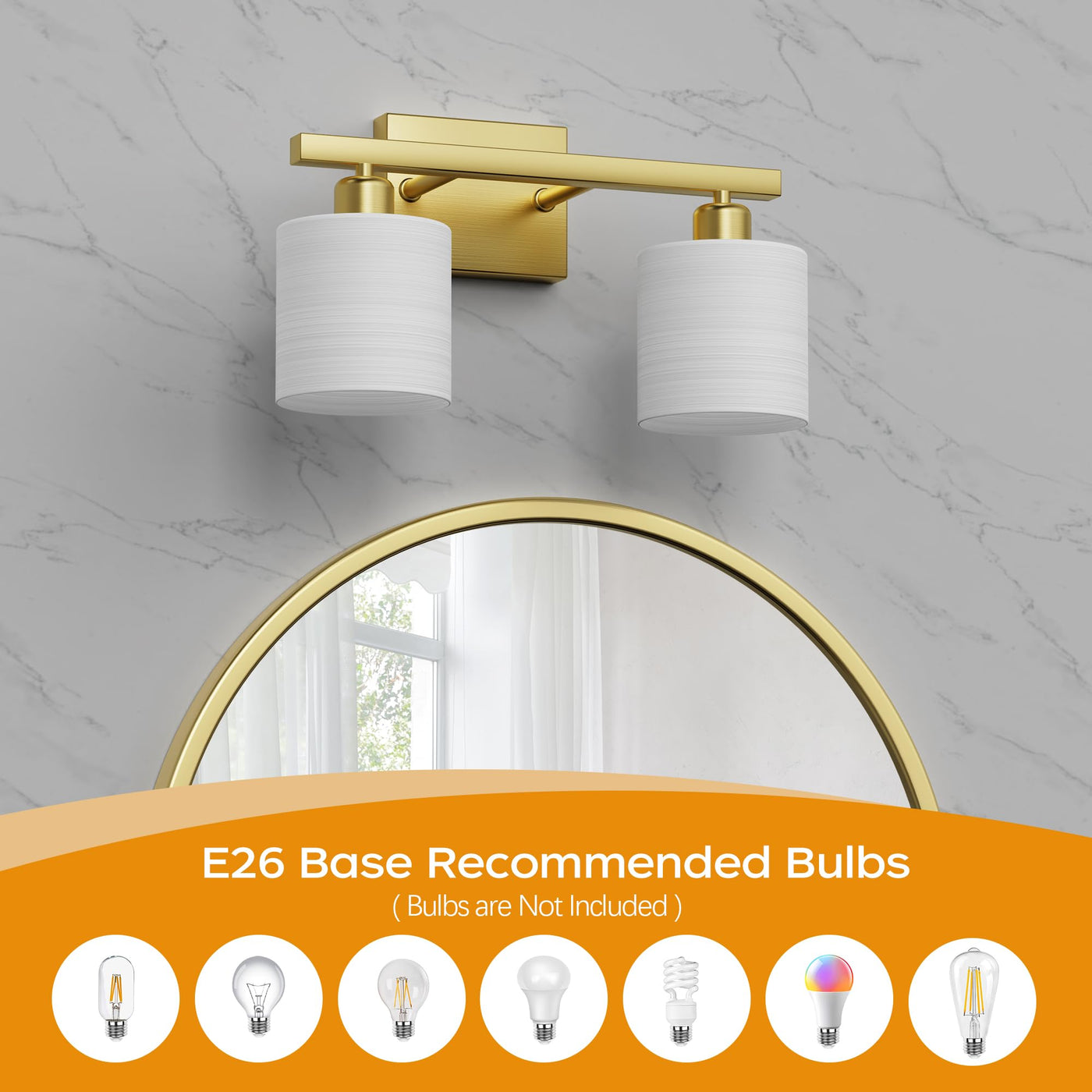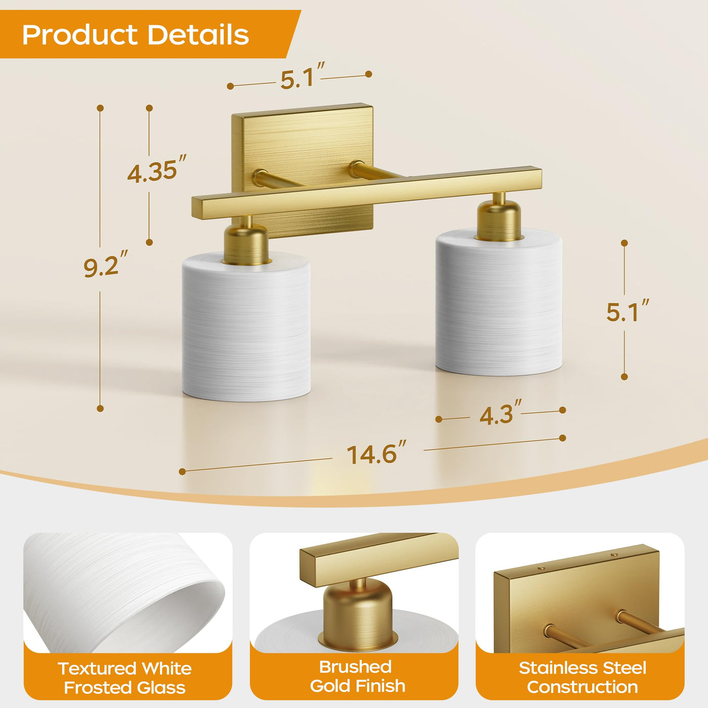 Partphoner Classic Vanity Lights, Modern Bathroom Vanity Light With Textured White Glass Shade, Brushed Gold, 2-Light