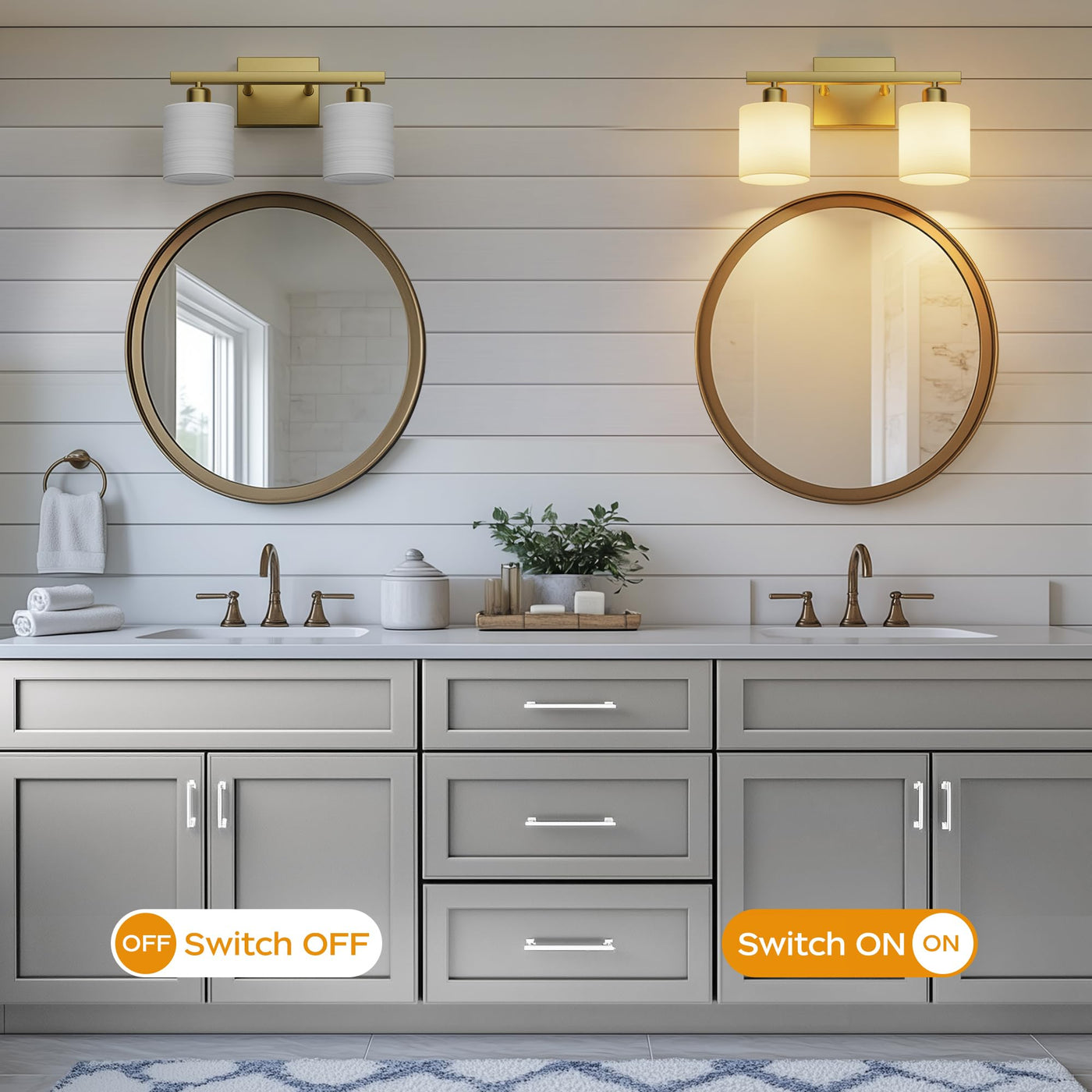 PARTPHONER Bathroom Light Fixtures, Bathroom Lighting Fixtures Over Mirror, Interior Classic Vanity Lights, Modern Bathroom Vanity Light with Textured White Glass Shade, Golden, 2-Light