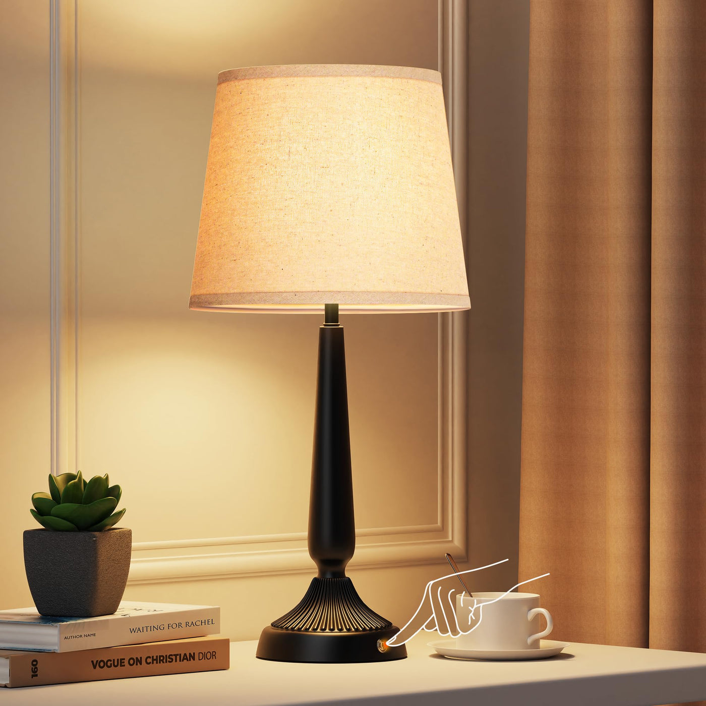 Partphoner Cordless Table Lamp, Rechargeable Touch Control Lamp, Wireless Led Lamps, 5000Mah Battery Stepless Dimmable Bedside Lamps, 10+ Hours Runtime, Modern Black Iron Design For Living Room, Dining Room, Kitchen, Bedroom