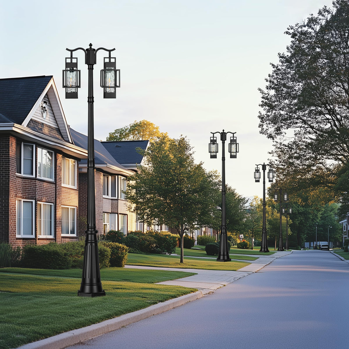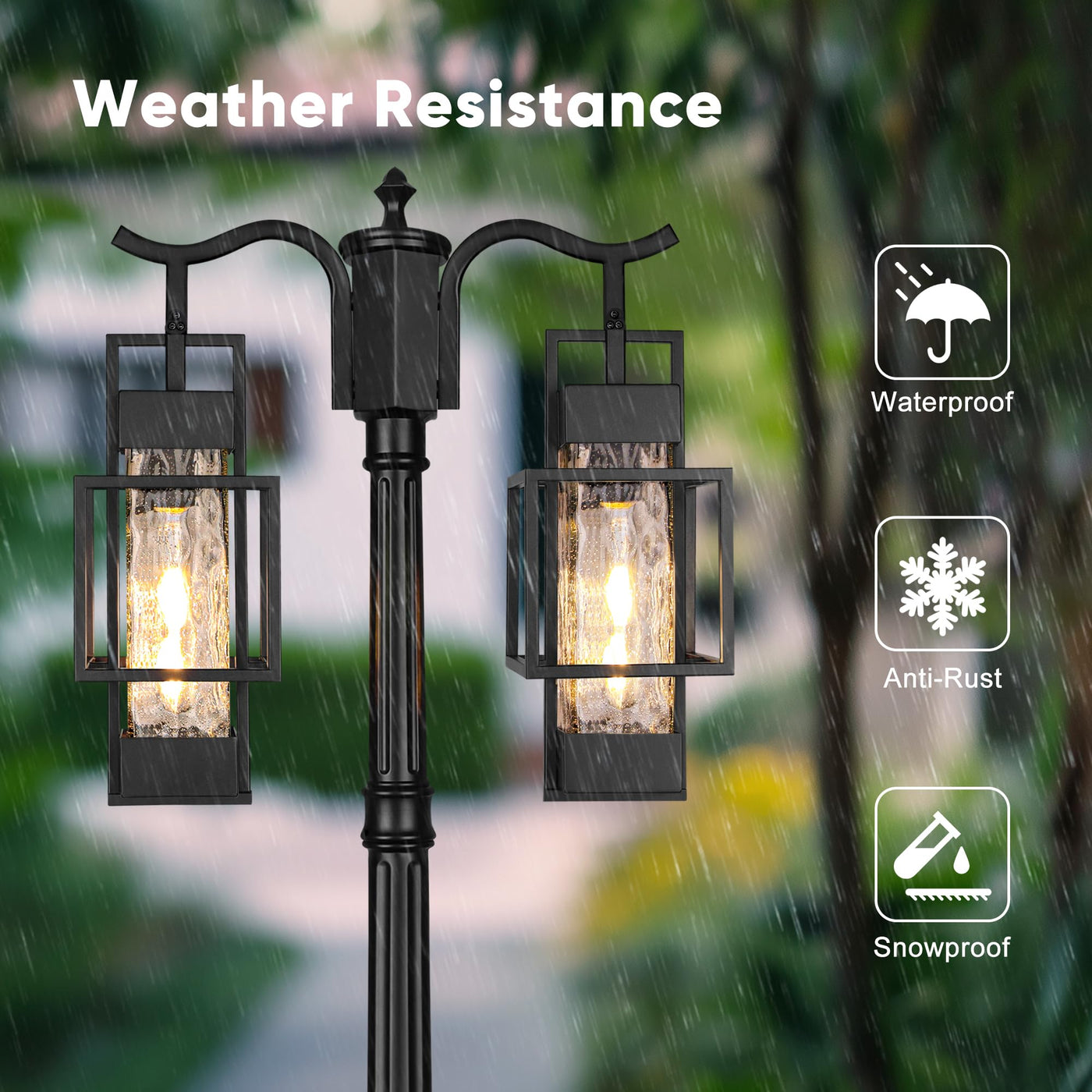 Partphoner Modern Outdoor Lamp Post Light 2-Head Hardwired Street Light Post For Outside Metal Pole Light Outdoor Lighting With Water Glass Shade For Garden Patio Backyard Walkway Driveway