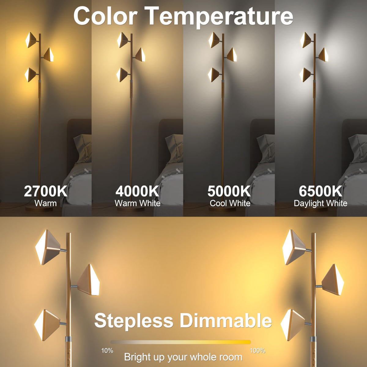 PARTPHONER RGB Tree Floor Lamp for Living Room, Stepless Dimmable Tall Standing Lamp with Remote, Touch Control and 3 Rotatable