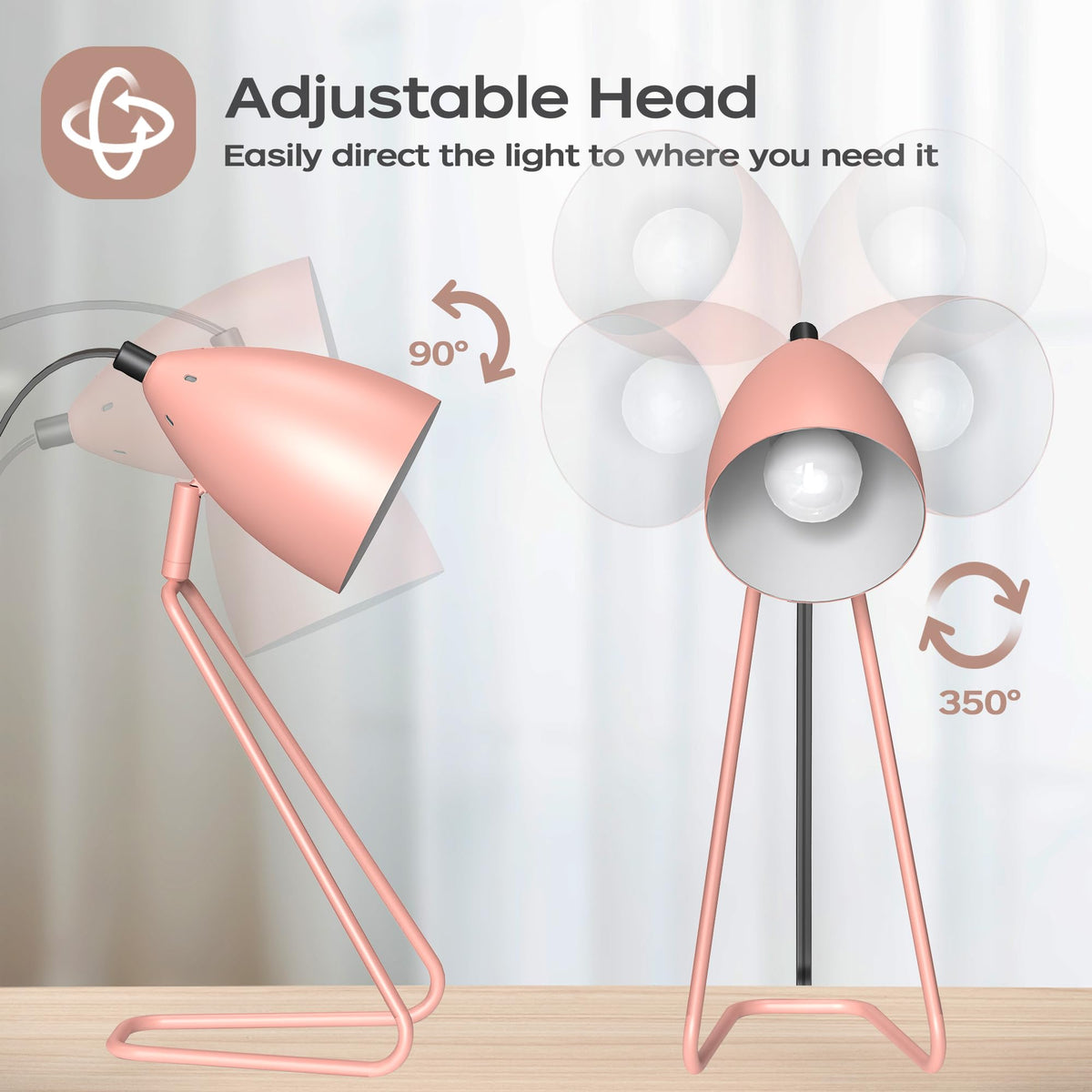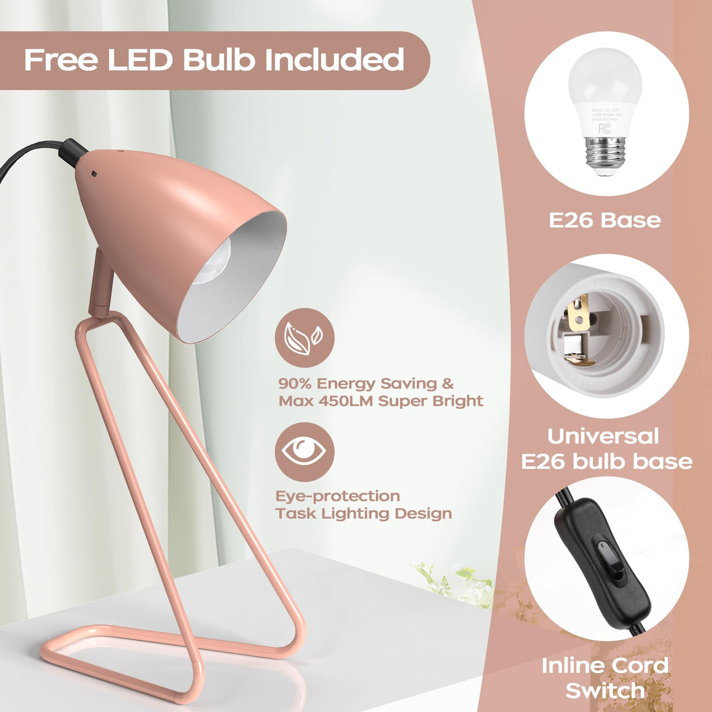 Partphoner Metal Desk Lamp 350Rotatable, Small Table Lamp Set Of 2, Modern Pink Reading Bedside Lamps, Suitable For Study, Bedroom, Office, Dorm, Children'S Room, Led Bulb Included