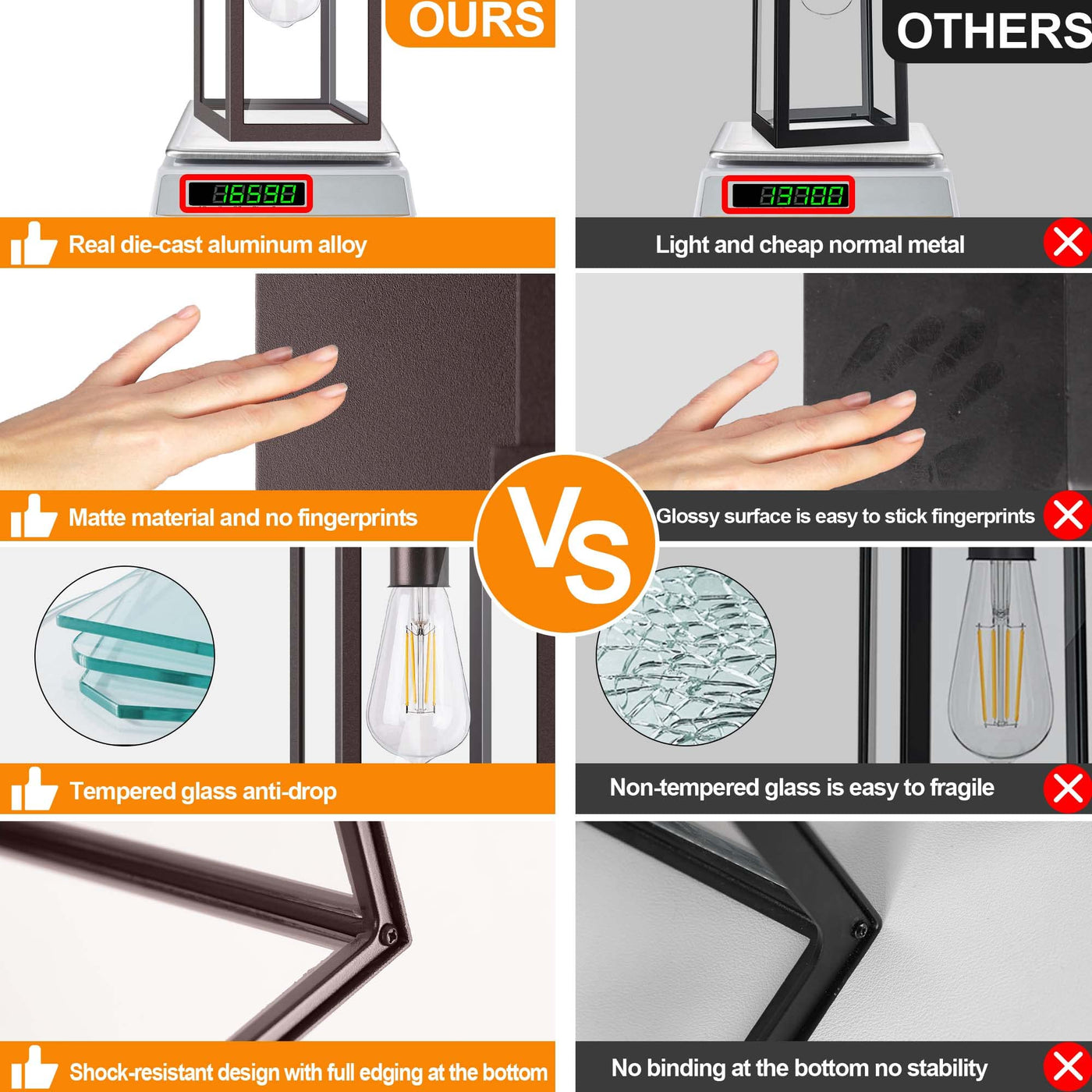 This Outdoor Wall Lantern Is Constructed From well-made Die-Cast Aluminum And Features A Thickened Tempered Glass Panel, Ensuring Exceptional Rust And Corrosion Resistance. Built To Withstand Extreme Weather Conditions, It Is Perfect For Areas Prone To Heavy Rain, Freezing Temperatures, Or Blizzards. The LanternS Open Bottom Design Facilitates Easy Bulb Replacement And Cleaning, Making Maintenance A Breeze. Additionally, The Lantern Comes Pre-Installed With A Glass Panel, And All Necessary Installation Accessories And Instructions Are Included For A Straightforward Setup Process.