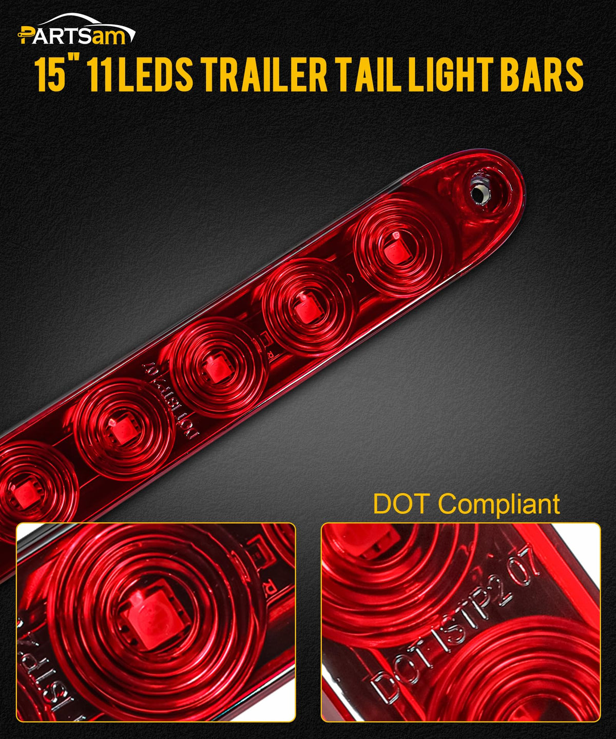 Partsam 4Pcs Red 15'' Inch Sealed 11 Led Third Brake Light Bar Stop Turn Signal Tail 3Rd Brake Light Id Bar Truck Trailer Rv Cam