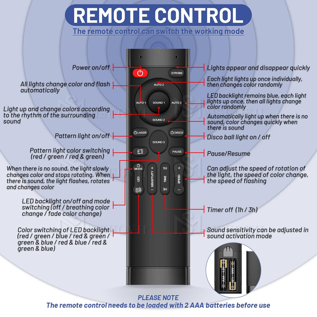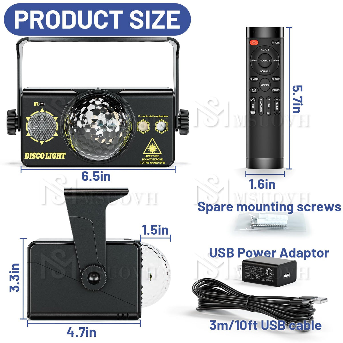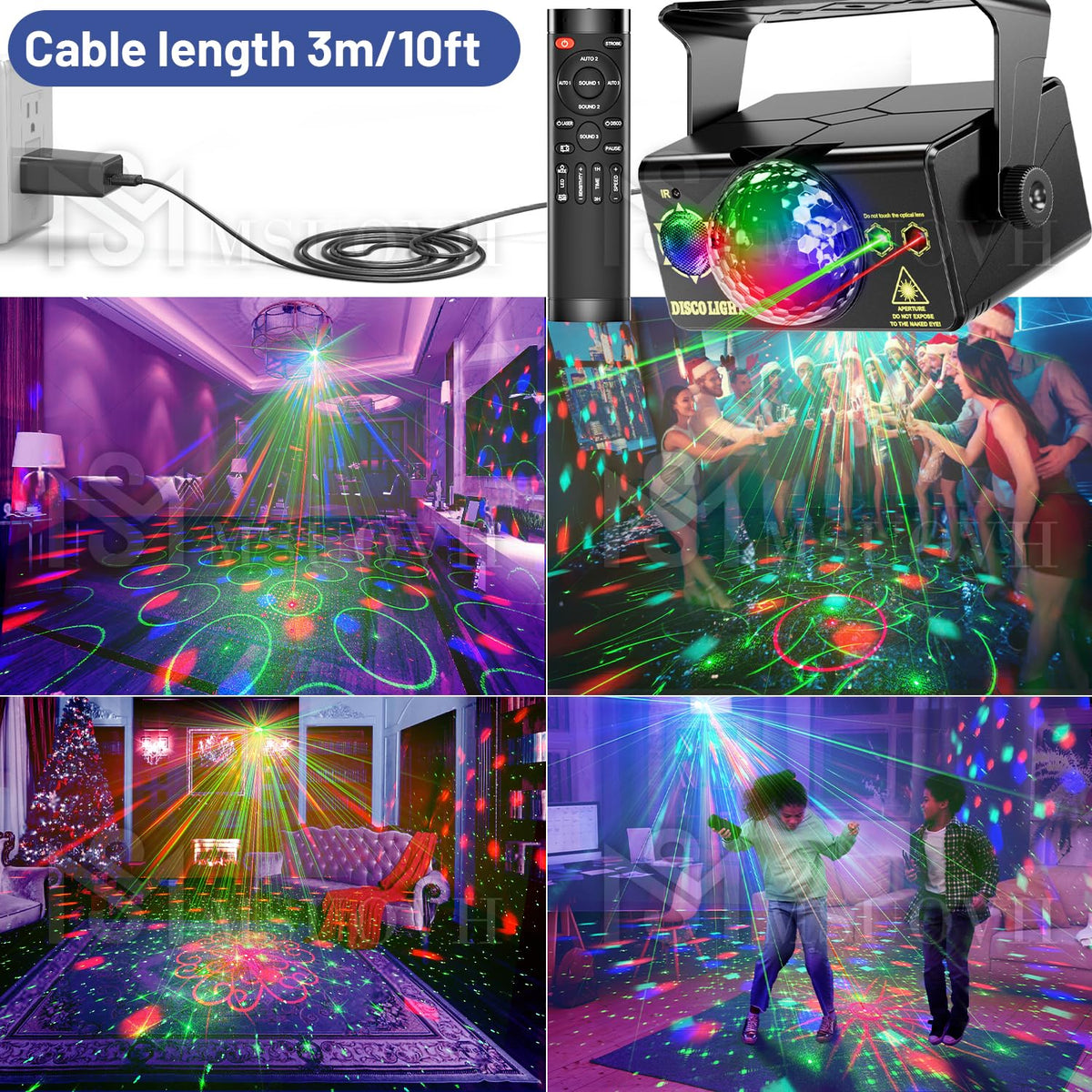 Party Lights Disco Light Strobe Stage Light Rave Lights Sound Activated RGB Led Projector with Remote Control for Parties Bar Bi