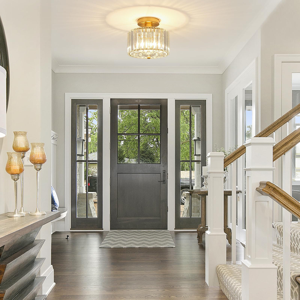 Small Crystal Ceiling Light Modern Mini Flush Mount Crystal Chandelier Gold Small Chandelier Light Fixture Entryway Lighting Fixture For Kitchen Hallway Laundry Room 1-Light Sf004-1-G