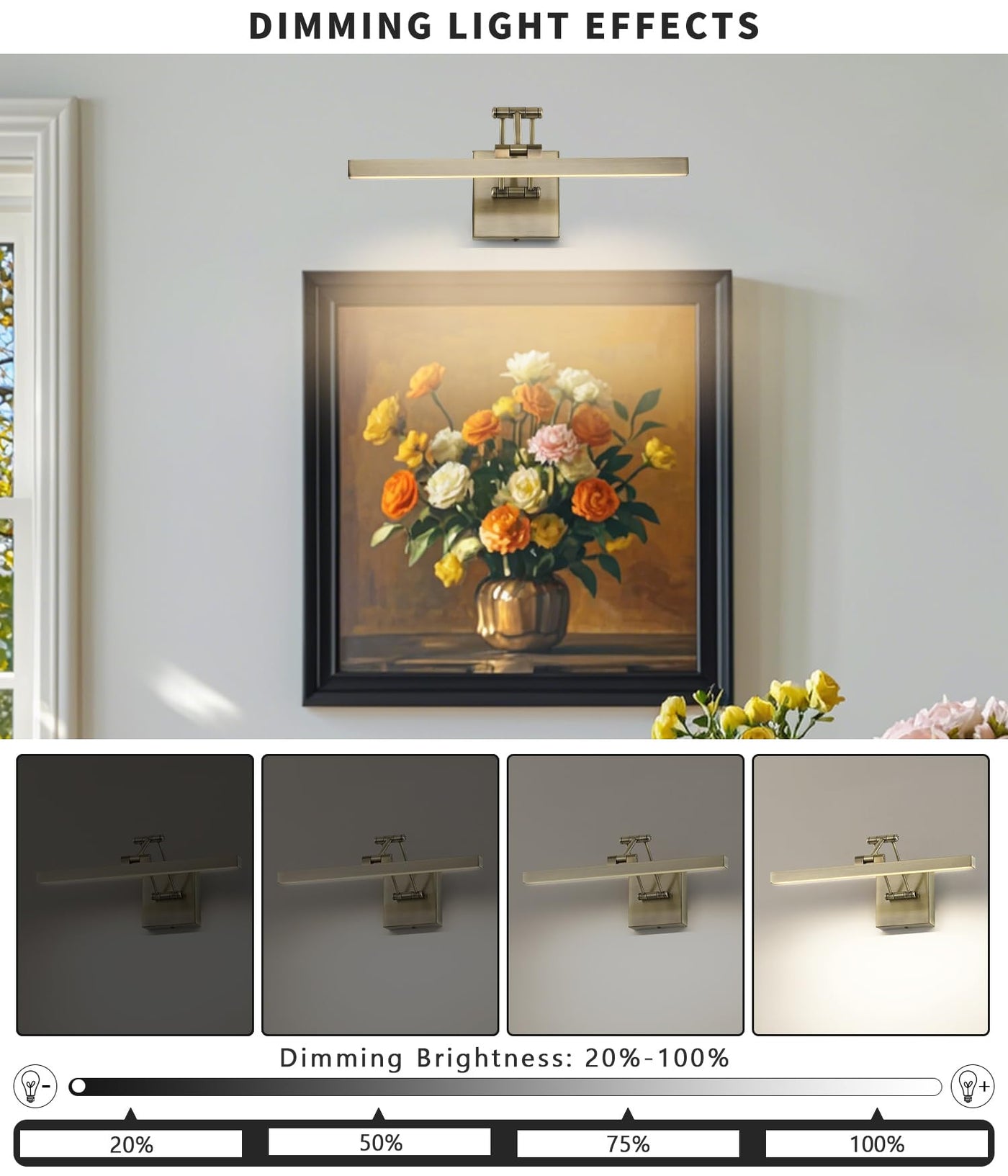 Pasoar Led Picture Lights For Paintings Dimmable 15.5 Inch Long Hard-Wired Picture Frame Lights Gallery Wall Light With Adjustab