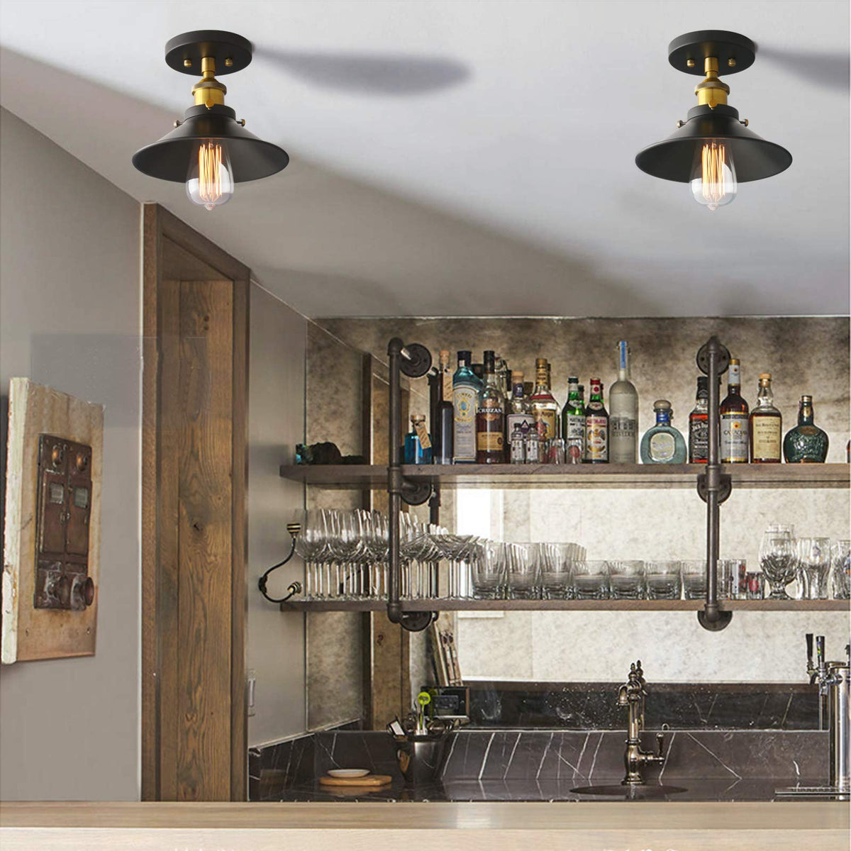 Pathson Vintage Ceiling Light With Metal Shade, Farmhouse Ceiling Lamp Fixtures For Hallway Loft Kitchen Bar, Brass Black Semi-F