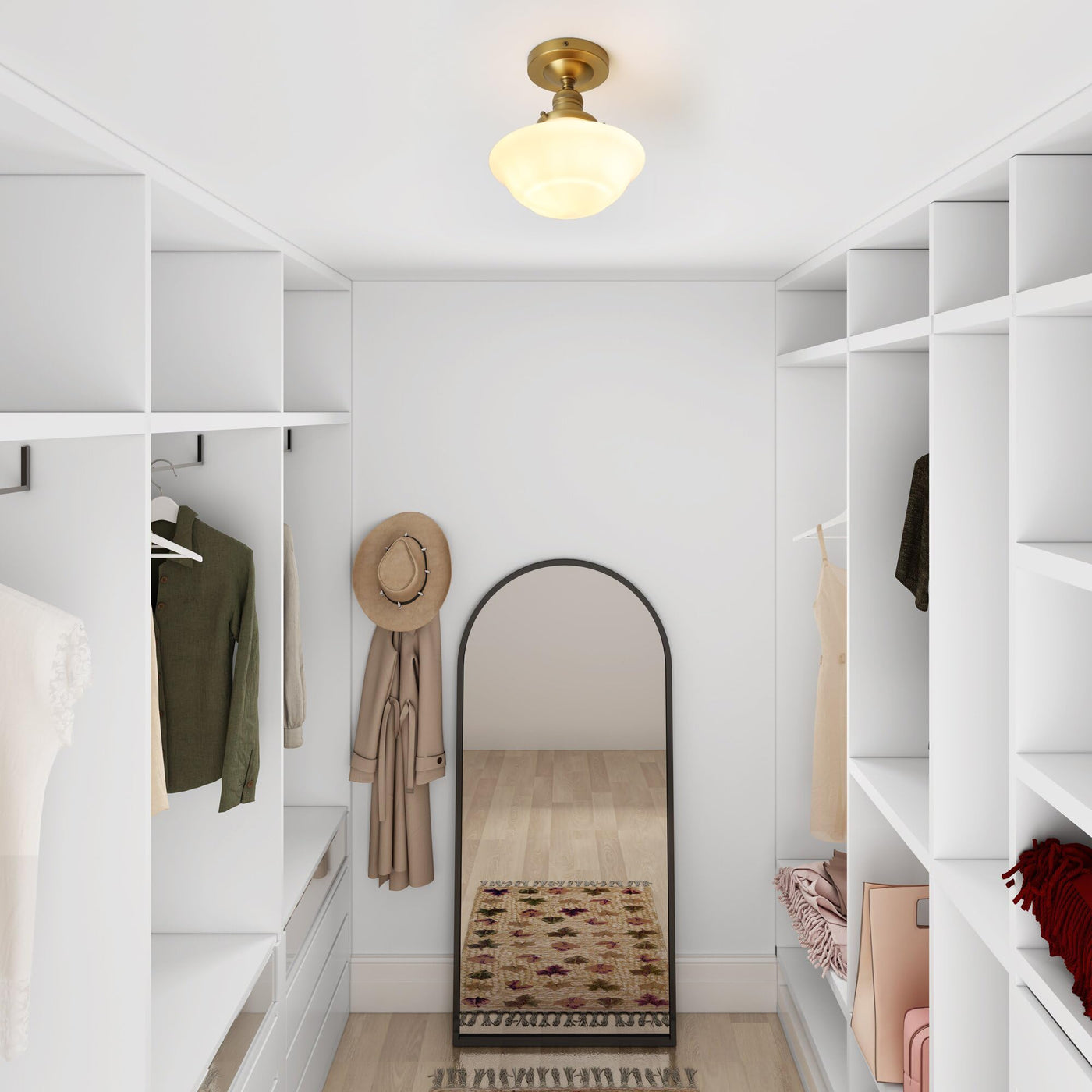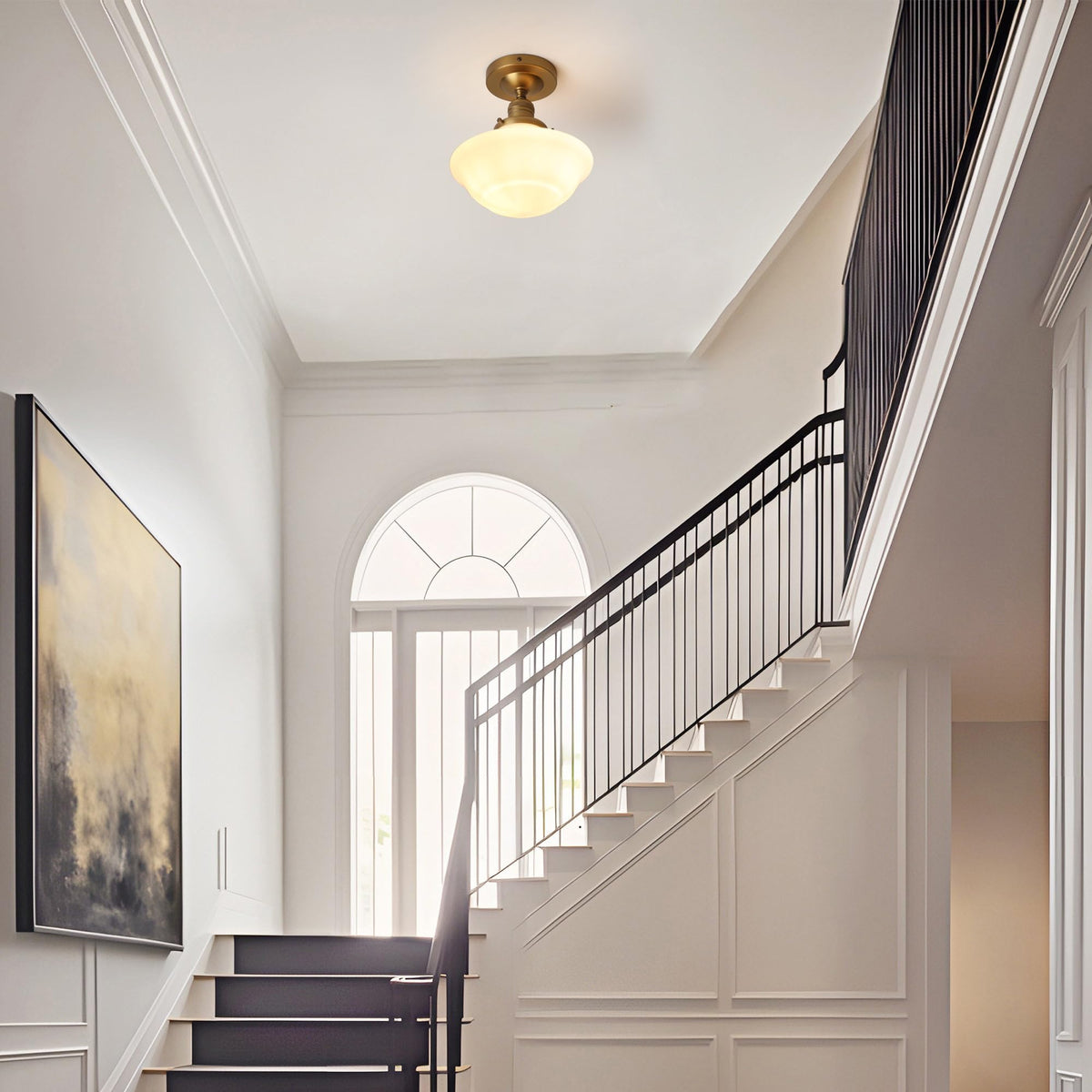 Pathson Vintage Flush Mounted Ceiling Light, Brass, Milk White Glass Shade, Model XLUS1142X
