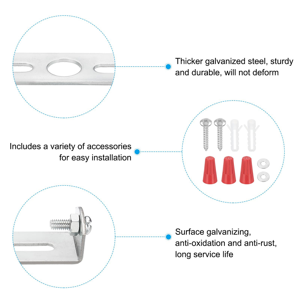 This lamp mounting bracket kit is designed for various types of lighting fixtures. It works perfectly with the ceiling light plate cover, making installation a breeze. It can be used with most wall lamps, ceiling lamps, chandeliers, corridor lights, outdoor lamps, pendant lights, etc. It is very suitable for use in many scenes such as home, office, store, etc.Specifications:Color: Silver;Material: Galvanized Carbon Steel;Overall Size: 115 x 18 x 15mm / 4.53 x 0.71 x 0.59 inch (L*W*H);Center Hole Dia: 10mm/ 0.39 inch;Board Thickness: 1.5mm / 0.06 inches;Packing List: 3 x Ceiling Light Plate (Screws, Nuts, Plugs, Wiring Caps and Washer Included)Advantages:Made of thicker galvanized steel, cut and polished, sturdy and durable, not easy to fall off, will not deform, and can support the installation of ceiling lamps weighing up to 22 pounds.The surface of the carbon steel material is galvanized, anti-oxidation and anti-rust, and durable.Instructions:The package contains screws and installation accessories, which are easy to install. You only need to use a household screwdriver to easily complete the installation of the lamp, saving you time and energy.Note:1. Please disconnect the power supply before installing the lamp.2. Please confirm the required size before purchasing.3. Not suitable for ceiling fan installation.