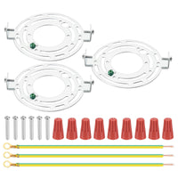 This lamp mounting bracket kit is designed for various types of lighting fixtures. It works perfectly with the ceiling light plate cover, making installation a breeze. It can be used with most wall lamps, ceiling lamps, chandeliers, corridor lights, outdoor lamps, pendant lights, etc. It is very suitable for use in many scenes such as home, office, store, etc.Specifications:Color: SilverMaterial: Galvanized Carbon SteelOverall Size: 115x100x15mm / 4.53x3.9x0.6 inches (L*W*H)Board Thickness: 1.5mm / 0.06 inchesGround Wire Length: 150mm / 5.9 inchesPacking List: 3 x Ceiling Light Plates (Including Screws, Wiring Caps, Ground Wires)Advantages:Made of thicker galvanized steel, cut and polished, sturdy and durable, not easy to fall off, will not deform, and can support the installation of ceiling lamps weighing up to 22 pounds.The surface of the carbon steel material is galvanized, anti-oxidation and anti-rust, and durable.Contains ground wire and a green ground screw, which can be used for quick grounding to more comprehensively protect your electrical and home safety.Instructions:The package contains screws and installation accessories, which are easy to install. You only need to use a household screwdriver to easily complete the installation of the lamp, saving you time and energy.Note:1. Please disconnect the power supply before installing the lamp.2. Please confirm the required size before purchasing.3. Not suitable for ceiling fan installation.