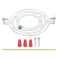 This lamp mounting bracket kit is designed for various types of lighting fixtures. It works perfectly with the ceiling light plate cover, making installation a breeze. It can be used with most wall lamps, ceiling lamps, chandeliers, corridor lights, outdoor lamps, pendant lights, etc. It is very suitable for use in many scenes such as home, office, store, etc.Specifications:Color: Silver;Material: Galvanized Carbon Steel;Overall Size: 125 x 100 x 14mm / 4.92 x 3.94 x 0.55 inches (L*W*H);Board Thickness: 1.5mm / 0.06 inches;Ground Wire Length: 150mm / 5.9 inches;Packing List: 1 x Ceiling Light Plates (Including Screws, Wiring Caps, Ground Wires)Advantages:Made of thicker galvanized steel, cut and polished, sturdy and durable, not easy to fall off, will not deform, and can support the installation of ceiling lamps weighing up to 22 pounds;The surface of the carbon steel material is galvanized, anti-oxidation anti-rust, and durable;Contains ground wire and a green ground screw, which can be used for quick grounding to more comprehensively protect your electrical and home safety.Instructions:The package contains screws and installation accessories, which are easy to install. You only need to use a household screwdriver to easily complete the installation of the lamp, saving you time and energy.Note:1. Please disconnect the power supply before installing the lamp.2. Please confirm the required size before purchasing.3. Not suitable for ceiling fan installation.